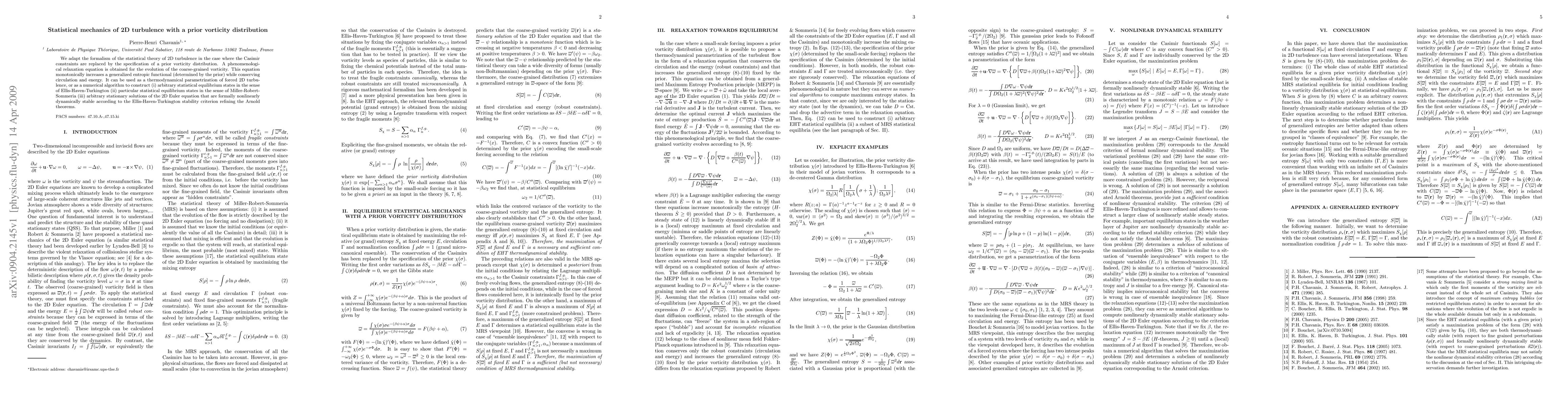 This paper develops a statistical mechanics framework for 2D turbulence with a specified initial vorticity distribution, deriving a relaxation equation that increases a generalized entropy while conserving circulation and energy. The equation serves as a parametrization for forced 2D turbulence and a tool for constructing various statistical equilibrium states.