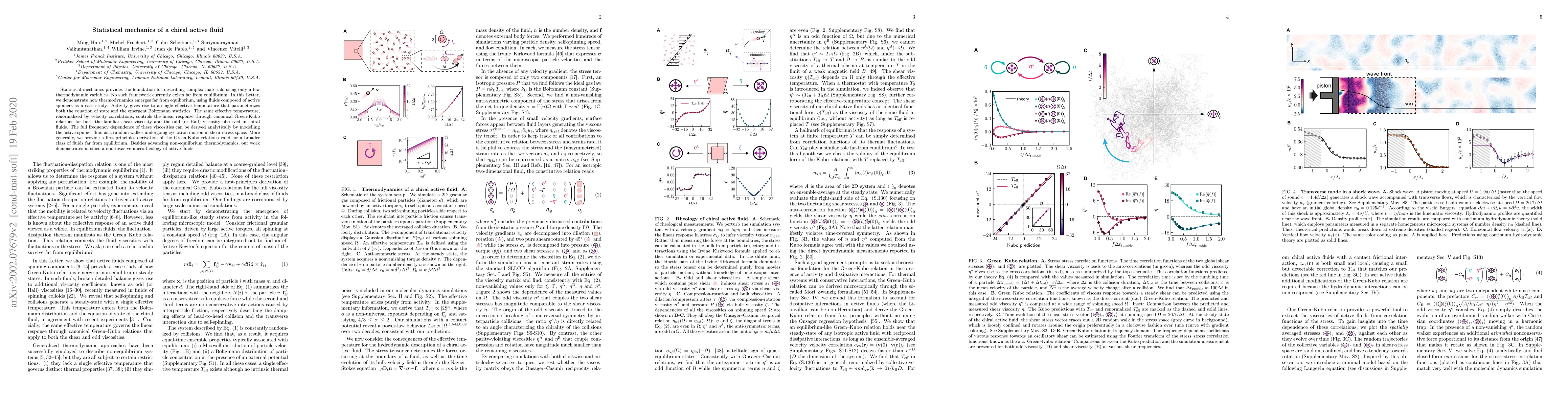 Statistical mechanics provides the foundation for describing complex materials using only a few thermodynamic variables. No such framework currently exists far from equilibrium. In this Letter, we demonstrate how thermodynamics emerges far from equilibrium, using fluids composed of active spinners as a case study. Activity gives rise to a single effective temperature that parameterizes both the equation of state and the emergent Boltzmann statistics. The same effective temperature, renormalized by velocity correlations, controls the linear response through canonical Green-Kubo relations for both the familiar shear viscosity and the odd (or Hall) viscosity observed in chiral fluids. The full frequency dependence of these viscosities can be derived analytically by modeling the active-spinner fluid as a random walker undergoing cyclotron motion in shear-stress space. More generally, we provide a first-principles derivation of the Green-Kubo relations valid for a broader class of fluids far from equilibrium. Besides advancing non-equilibrium thermodynamics, our work demonstrates in silico a non-invasive microrheology of active fluids.