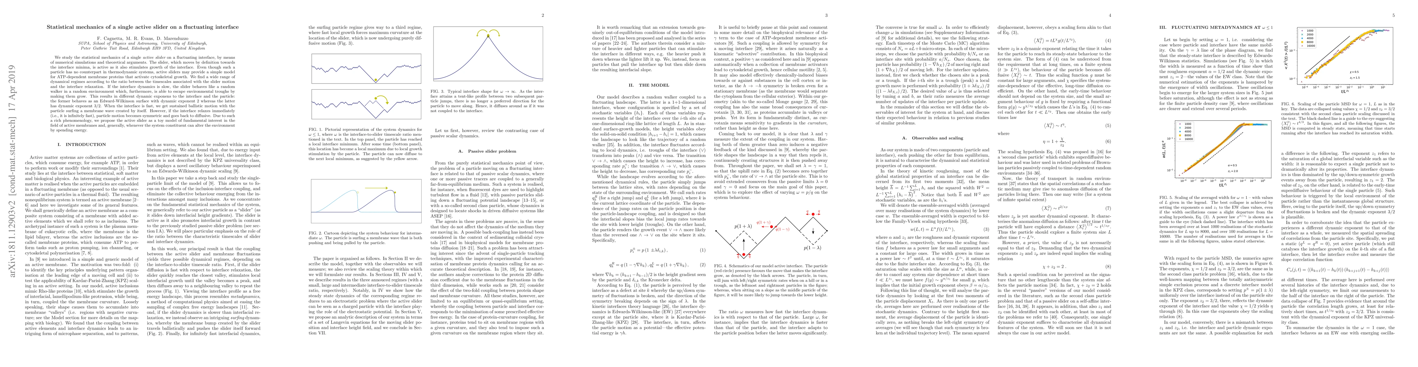 We study the statistical mechanics of a single active slider on a fluctuating interface, by means of numerical simulations and theoretical arguments. The slider, which moves by definition towards the interface minima, is active as it also stimulates growth of the interface. Even though such a particle has no counterpart in thermodynamic systems, active sliders may provide a simple model for ATP-dependent membrane proteins that activate cytoskeletal growth. We find a wide range of dynamical regimes according to the ratio between the timescales associated with the slider motion and the interface relaxation. If the interface dynamics is slow, the slider behaves like a random walker in a random envinronment which, furthermore, is able to escape environmental troughs by making them grow. This results in different dynamic exponens to the interface and the particle: the former behaves as an Edward-Wilkinson surface with dynamic exponent 2 whereas the latter has dynamic exponent 3/2. When the interface is fast, we get sustained ballistic motion with the particle surfing a membrane wave created by itself. However, if the interface relaxes immediately (i.e., it is infinitely fast), particle motion becomes symmetric and goes back to diffusive. Due to such a rich phenomenology, we propose the active slider as a toy model of fundamental interest in the field of active membranes and, generally, whenever the system constituent can alter the environment by spending energy.