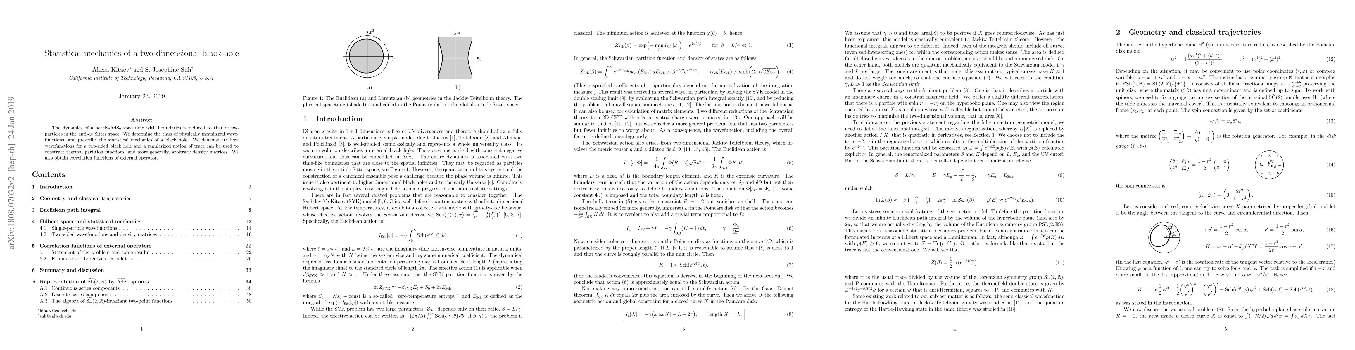 The dynamics of a nearly-AdS2 spacetime with boundaries is reduced to two particles in the anti-de Sitter space. We determine the class of physically meaningful wavefunctions, and prescribe the statistical mechanics of a black hole. We demonstrate how wavefunctions for a two-sided black hole and a regularized notion of trace can be used to construct thermal partition functions, and more generally, arbitrary density matrices. We also obtain correlation functions of external operators.