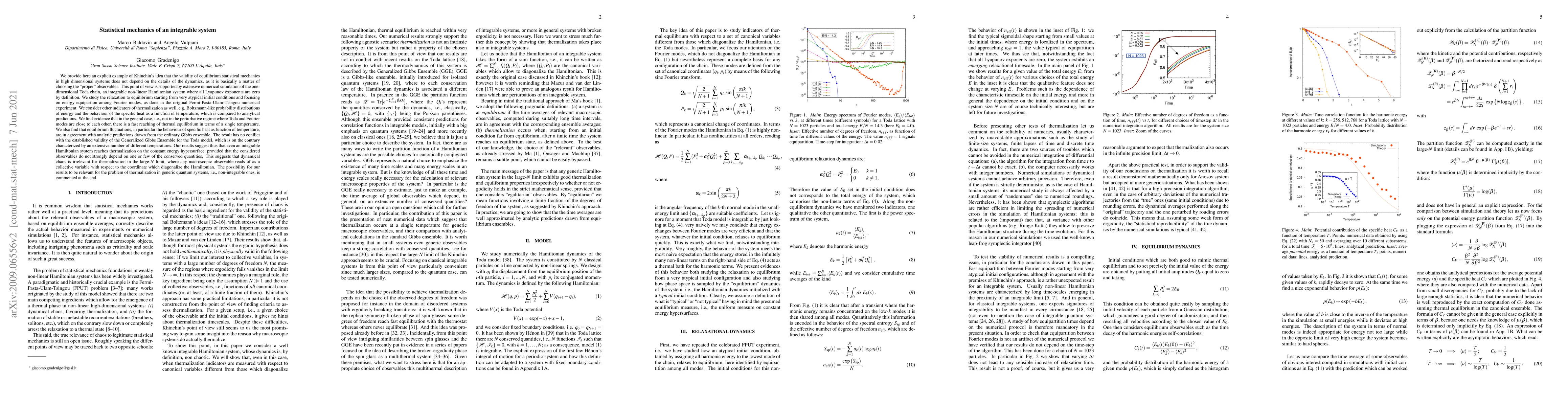 We provide here an explicit example of Khinchin's idea that the validity of equilibrium statistical mechanics in high dimensional systems does not depend on the details of the dynamics. This point of view is supported by extensive numerical simulation of the one-dimensional Toda chain, an integrable non-linear Hamiltonian system where all Lyapunov exponents are zero by definition. We study the relaxation to equilibrium starting from very atypical initial conditions and focusing on energy equipartion among Fourier modes, as done in the original Fermi-Pasta-Ulam-Tsingou numerical experiment. We find evidence that in the general case, i.e., not in the perturbative regime where Toda and Fourier modes are close to each other, there is a fast reaching of thermal equilibrium in terms of a single temperature. We also find that equilibrium fluctuations, in particular the behaviour of specific heat as function of temperature, are in agreement with analytic predictions drawn from the ordinary Gibbs ensemble, still having no conflict with the established validity of the Generalized Gibbs Ensemble for the Toda model. Our results suggest thus that even an integrable Hamiltonian system reaches thermalization on the constant energy hypersurface, provided that the considered observables do not strongly depend on one or few of the conserved quantities. This suggests that dynamical chaos is irrelevant for thermalization in the large-$N$ limit, where any macroscopic observable reads of as a collective variable with respect to the coordinate which diagonalize the Hamiltonian. The possibility for our results to be relevant for the problem of thermalization in generic quantum systems, i.e., non-integrable ones, is commented at the end.