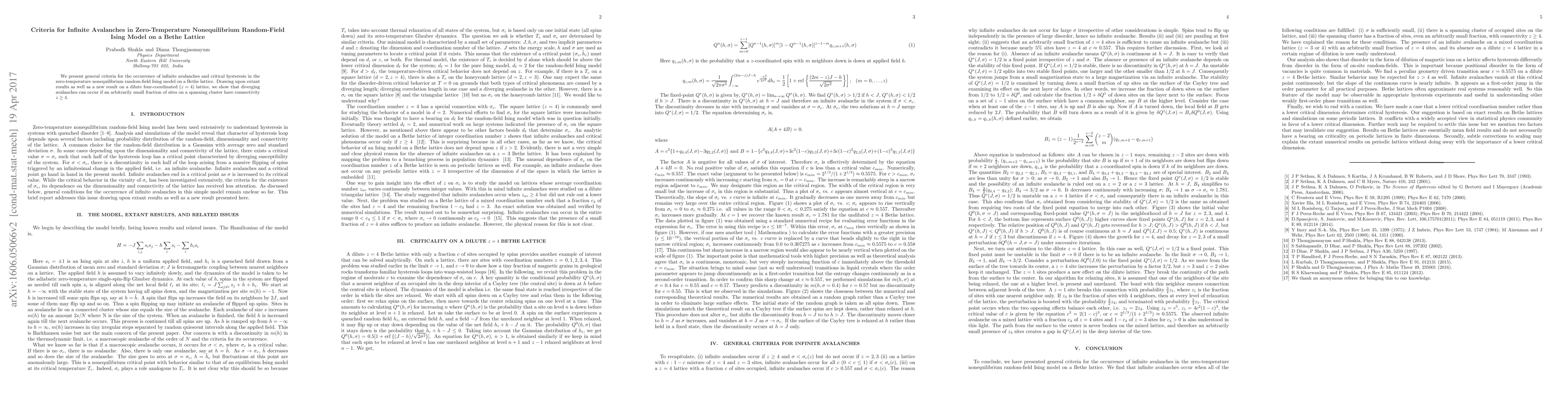 Researchers study infinite avalanches in a nonequilibrium random-field Ising model on a random graph, finding that sites with a coordination number of 4 play a key role in their occurrence.