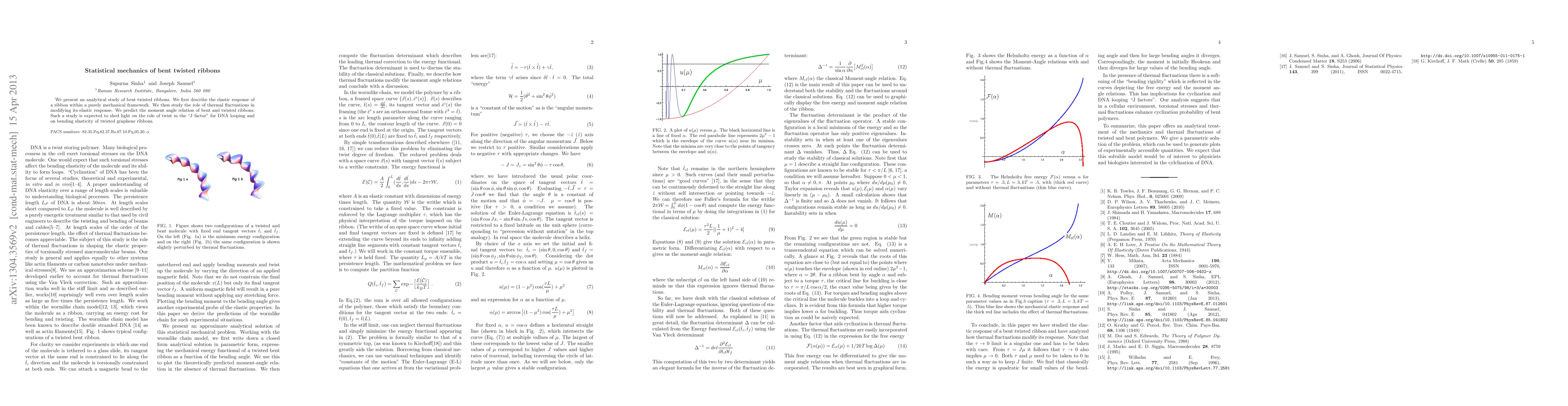 This paper analytically investigates the elastic response and thermal fluctuations of bent twisted ribbons, predicting their moment angle relation and potentially informing understanding of DNA looping and graphene ribbon elasticity.