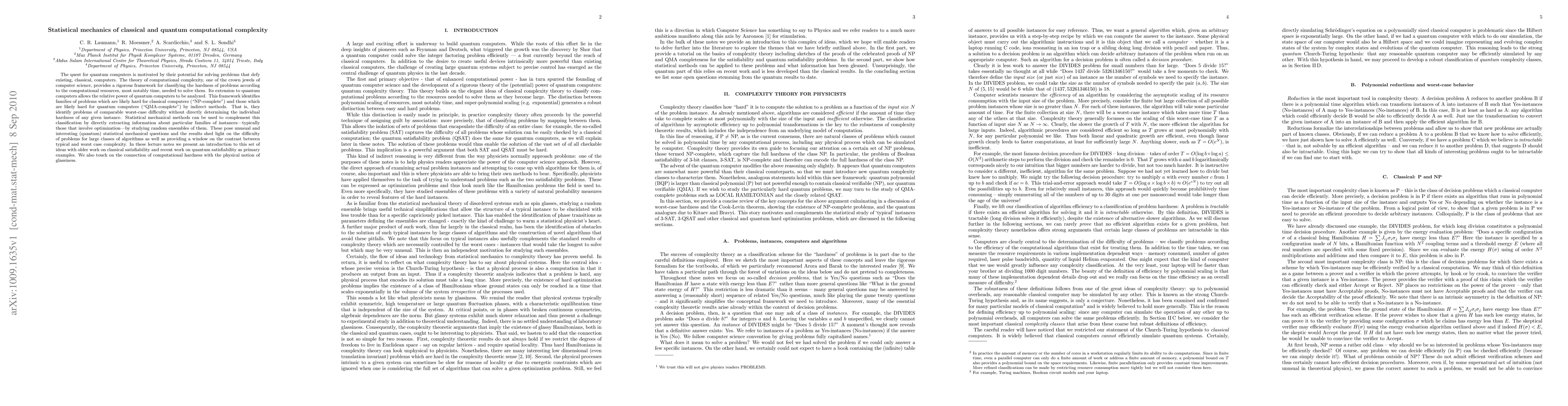 This paper explores the application of statistical mechanics to classify computational complexity for both classical and quantum computers, using statistical methods to analyze problem-solving difficulty in optimization problems. It highlights the contrast between typical and worst-case complexity and connects computational hardness with physical concepts like glassiness.