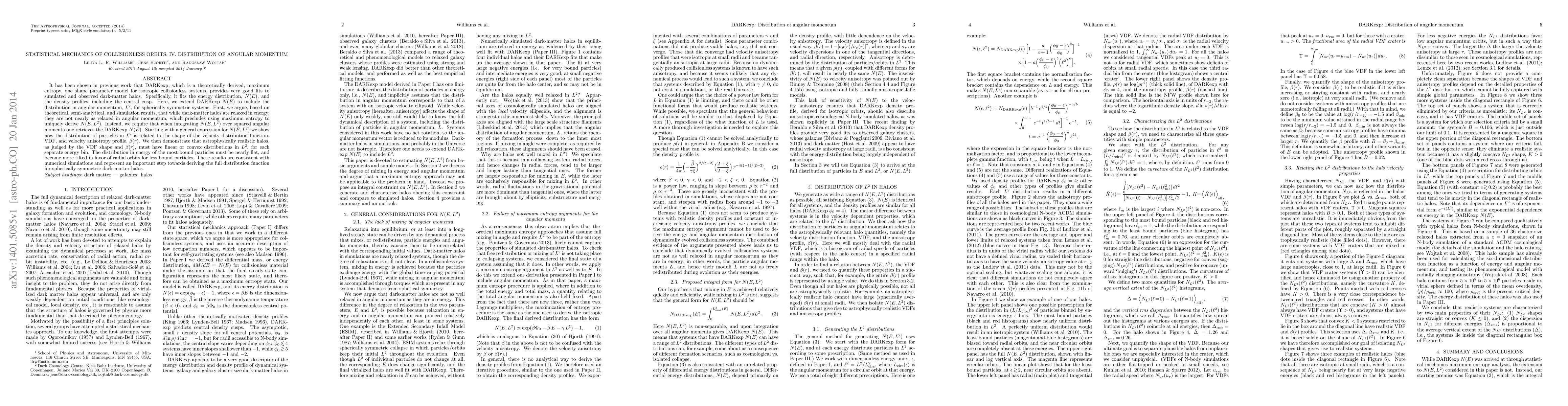 This paper extends the DARKexp model to include the angular momentum distribution in spherically symmetric dark-matter halos, showing that while halos are relaxed in energy, they exhibit non-uniform angular momentum distributions. It concludes that the distribution of angular momentum must be linear or convex, and that the most bound particles have a nearly flat energy distribution, becoming more radially biased for less bound particles.