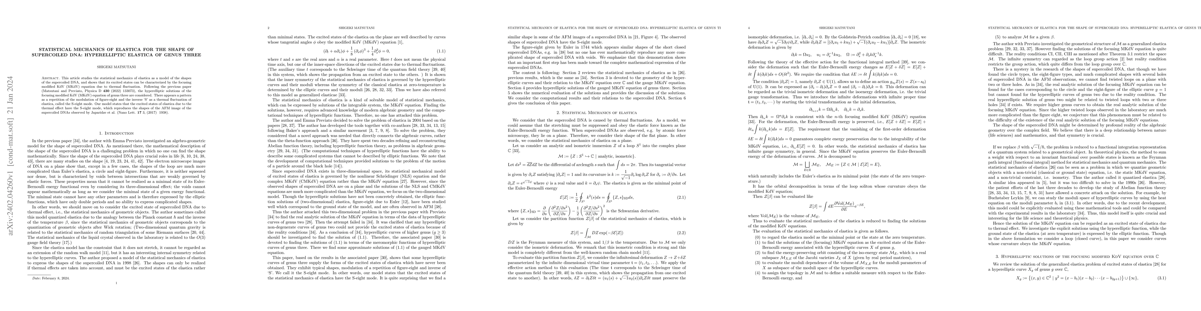 This article studies the statistical mechanics of elastica as a model of the shapes of the supercoiled DNA, and shows that its excited states can be characterized by the focusing modified KdV (MKdV) equation due to thermal fluctuation. Following the previous paper (Matsutani and Previato, Physica D 430 (2022) 133073), the hyperelliptic solutions of the focusing modified KdV (MKdV) equation of genus three are considered. There appears a pattern as a repetition of the modulation of figure-eight and the inverse 'S' as a thermal fluctuation of elastica, called the S-eight mode. Our model states that the excited states of elastica due to the thermal effect have the S-eight mode, which reproduces the shapes of the AFM image of the supercoiled DNAs observed by Japaridze et al. (Nano Lett. 17 3, (2017) 1938).