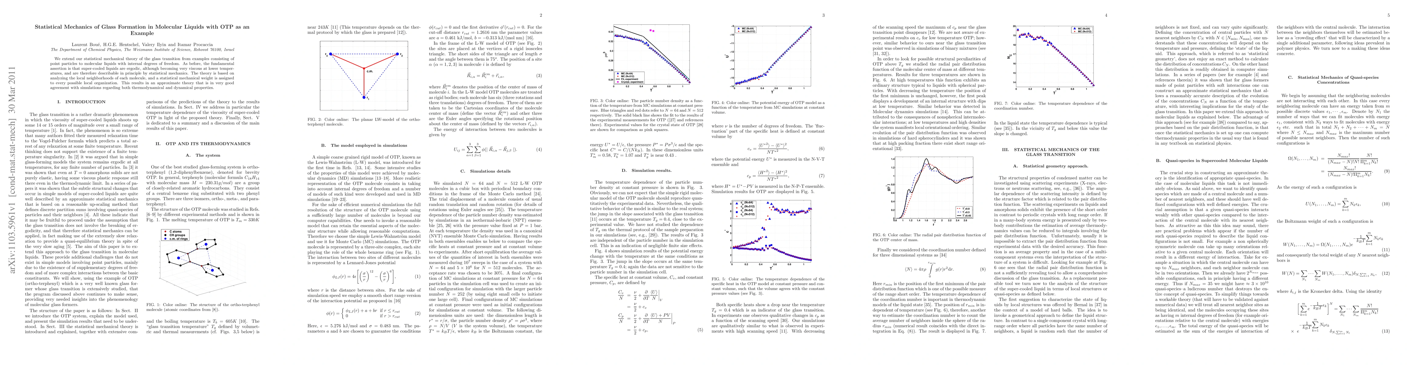 This paper extends a statistical mechanical theory of glass formation to molecular liquids with internal degrees of freedom, focusing on the Onsager-Thiele-Pauling (OTP) model. The theory posits that supercooled liquids remain ergodic but become highly viscous, thus describable by statistical mechanics through local molecular organization analysis.