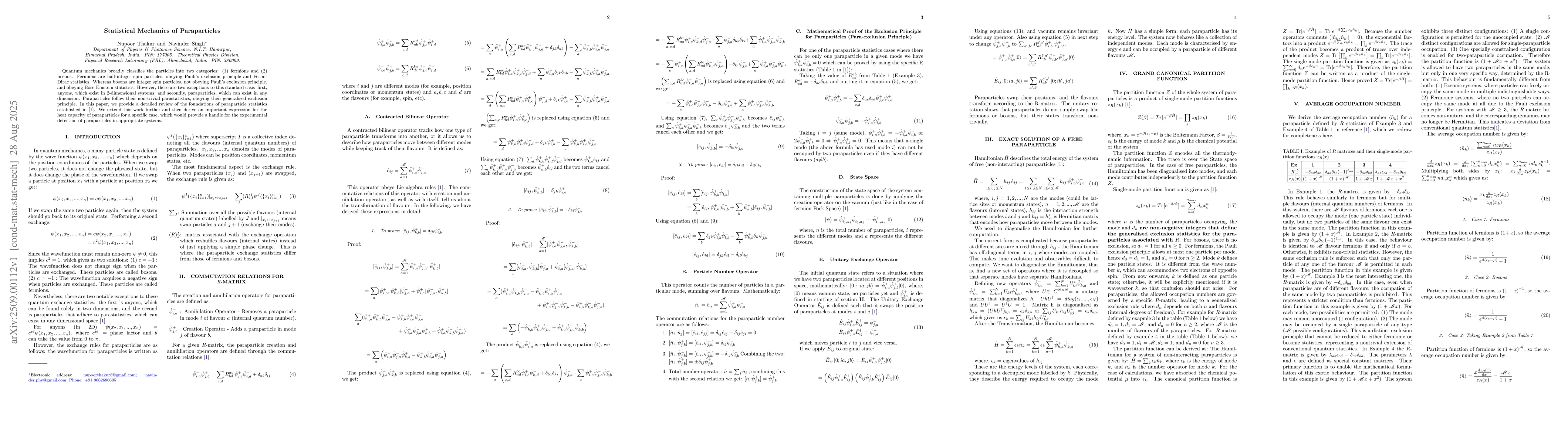 Quantum mechanics broadly classifies the particles into two categories: $(1)$ fermions and $(2)$ bosons. Fermions are half-integer spin particles, obeying Pauli's exclusion principle and Fermi-Dirac statistics. Whereas bosons are integer spin particles, not obeying Pauli's exclusion principle, and obeying Bose-Einstein statistics. However, there are two exceptions to this standard case: first, anyons, which exist in 2-dimensional systems, and secondly, paraparticles, which can exist in any dimension. Paraparticles follow their non-trivial parastatistics, obeying their generalised exclusion principle. In this paper, we provide a detailed review of the foundations of paraparticle statistics established in \cite{wang2025particle}. We extend this work further and then derive an important expression for the heat capacity of paraparticles for a specific case, which would provide a handle for the experimental detection of paraparticles in appropriate systems.