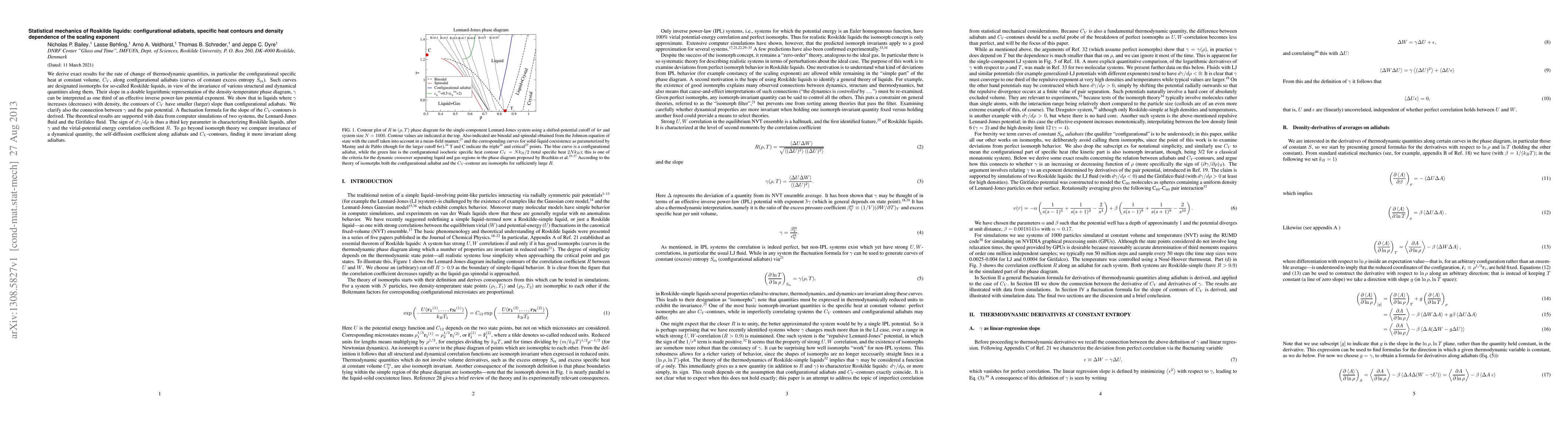 Researchers derived exact results for thermodynamic quantities in Roskilde liquids along configurational adiabats, showing that the slope of specific heat contours depends on density and pair potential.