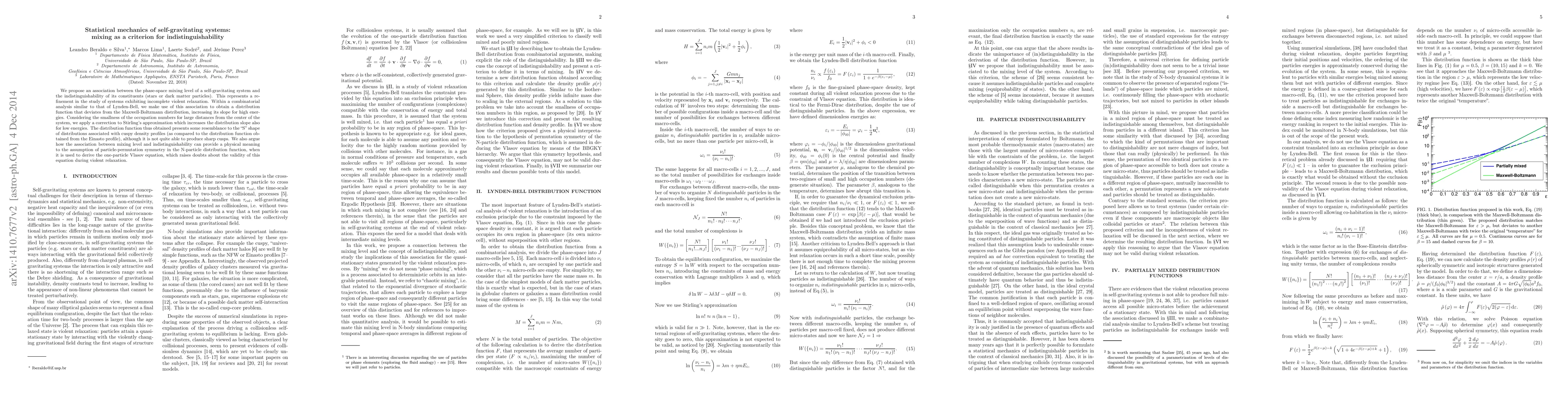Researchers developed a distribution function for self-gravitating systems that deviates from the Maxwell-Boltzmann distribution, with higher slopes at high energies, suggesting a link between phase-space mixing and indistinguishability of constituents.