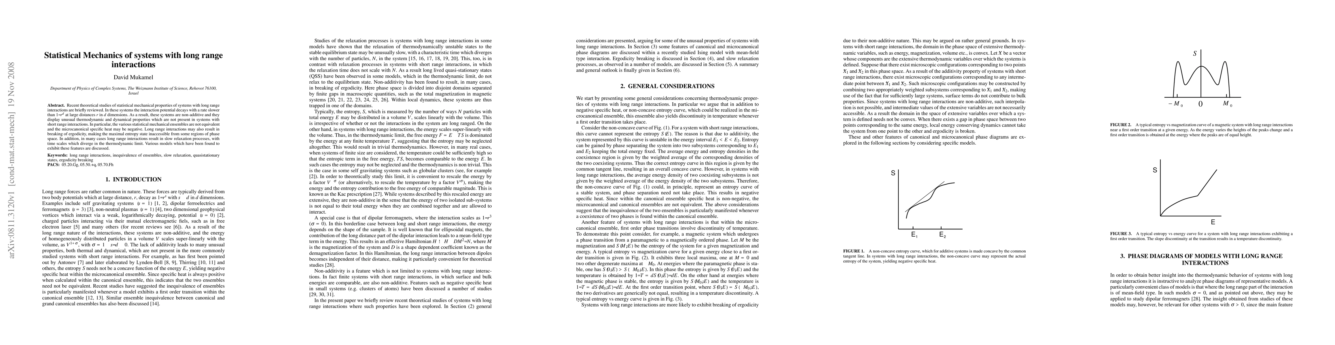 This paper reviews theoretical studies on the statistical mechanics of systems with long-range interactions, noting that these systems display non-additive properties, inequivalence of statistical ensembles, and slow relaxation processes, leading to unusual thermodynamic and dynamical behaviors distinct from short-range interaction systems. Models exhibiting these characteristics are also discussed.