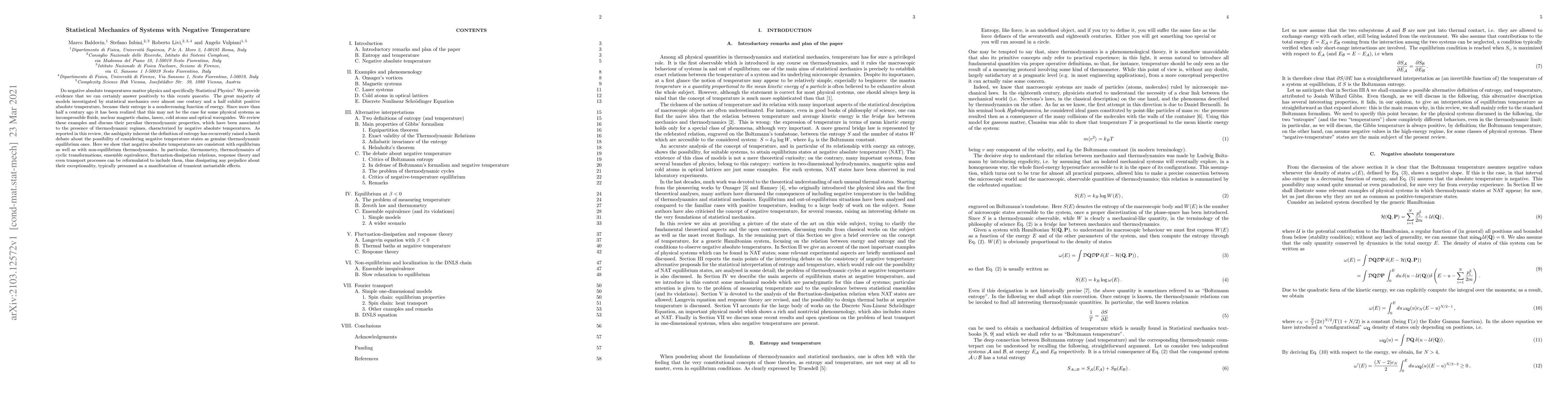 Do negative absolute temperatures matter physics and specifically Statistical Physics? We provide evidence that we can certainly answer positively to this vexata quaestio. The great majority of models investigated by statistical mechanics over almost one century and a half exhibit positive absolute temperature, because their entropy is a nondecreasing function of energy. Since more than half a century ago it has been realized that this may not be the case for some physical systems as incompressible fluids, nuclear magnetic chains, lasers, cold atoms and optical waveguides. We review these examples and discuss their peculiar thermodynamic properties, which have been associated to the presence of thermodynamic regimes, characterized by negative absolute temperatures. As reported in this review, the ambiguity inherent the definition of entropy has recurrently raised a harsh debate about the possibility of considering negative temperature states as genuine thermodynamic equilibrium ones. Here we show that negative absolute temperatures are consistent with equilibrium as well as with non-equilibrium thermodynamics. In particular, thermometry, thermodynamics of cyclic transformations, ensemble equivalence, fluctuation-dissipation relations, response theory and even transport processes can be reformulated to include them, thus dissipating any prejudice about their exceptionality, typically presumed as a manifestation of transient metastable effects.