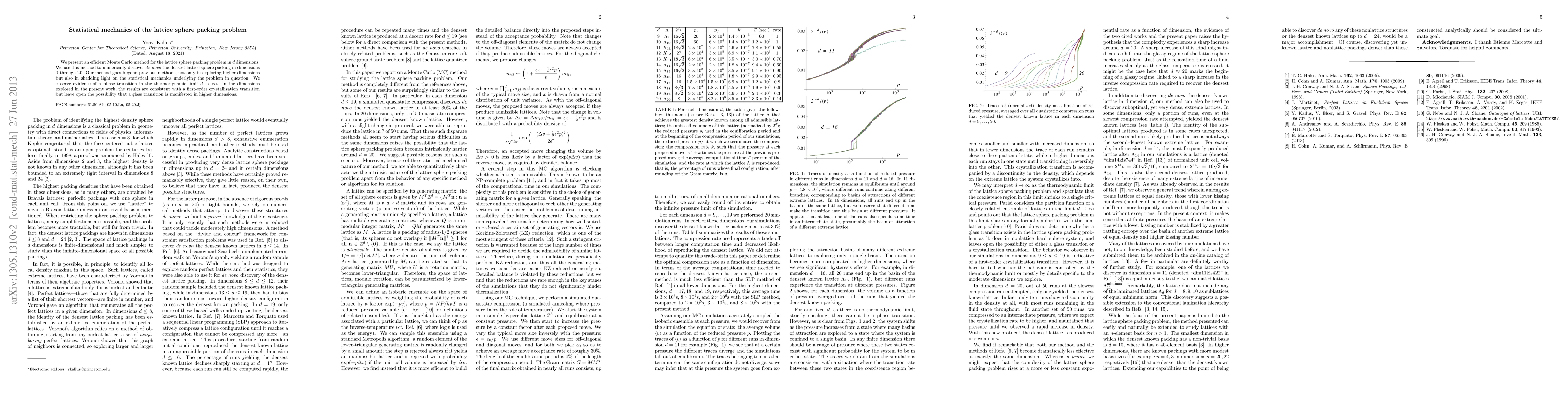 This paper introduces a Monte Carlo method to explore the densest lattice sphere packing in dimensions 9 through 20, revealing a first-order crystallization transition in these dimensions and suggesting a potential glass transition in higher dimensions. The method provides insights into the statistical mechanics of the lattice sphere packing problem.