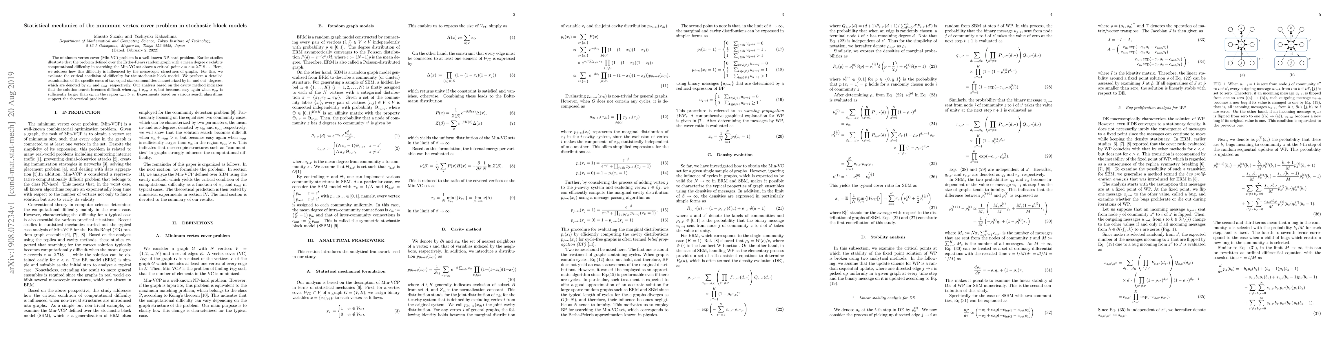 This paper investigates the computational difficulty of the minimum vertex cover problem in stochastic block models, finding that difficulty arises when the sum of in- and out-degrees exceeds the critical point $e$, but becomes manageable when out-degrees significantly surpass in-degrees. Theoretical analysis using the cavity method and experimental validation via search algorithms support these findings.