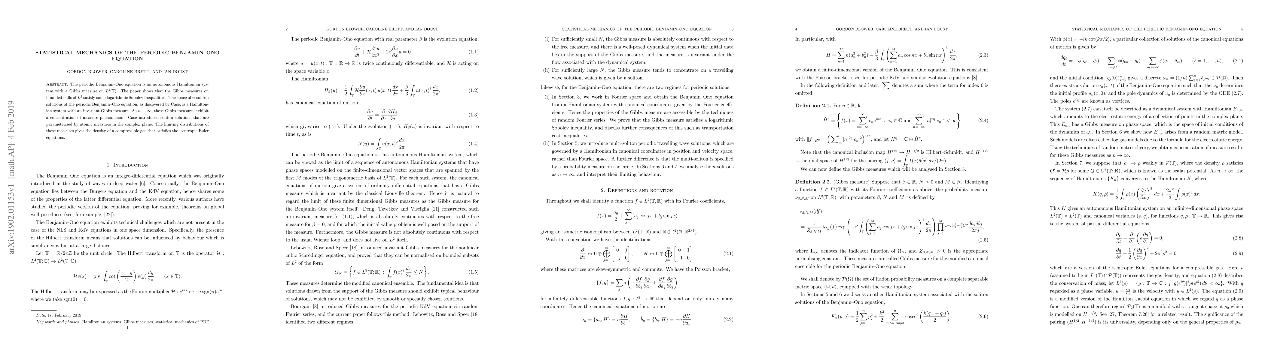 The periodic Benjamin-Ono equation is an autonomous Hamiltonian system with a Gibbs measure on $L^2({\mathbb T})$. The paper shows that the Gibbs measures on bounded balls of $L^2$ satisfy some logarithmic Sobolev inequalities. The space of $n$-soliton solutions of the periodic Benjamin-Ono equation, as discovered by Case, is a Hamiltonian system with an invariant Gibbs measure. As $n\rightarrow\infty$, these Gibbs measures exhibit a concentration of measure phenomenon. Case introduced soliton solutions that are parameterised by atomic measures in the complex plane. The limiting distributions of these measures gives the density of a compressible gas that satisfies the isentropic Euler equations.