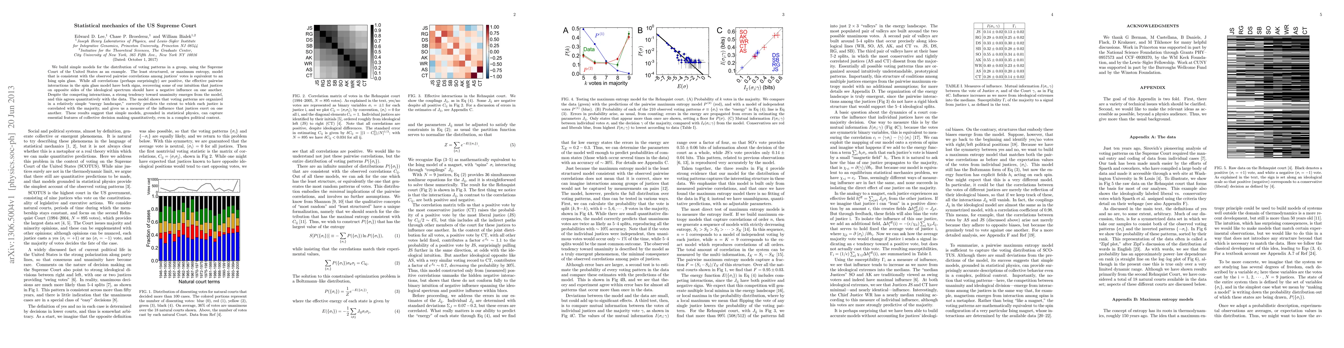 We build simple models for the distribution of voting patterns in a group, using the Supreme Court of the United States as an example. The least structured, or maximum entropy, model that is consistent with the observed pairwise correlations among justices' votes is equivalent to an Ising spin glass. While all correlations (perhaps surprisingly) are positive, the effective pairwise interactions in the spin glass model have both signs, recovering some of our intuition that justices on opposite sides of the ideological spectrum should have a negative influence on one another. Despite the competing interactions, a strong tendency toward unanimity emerges from the model, and this agrees quantitatively with the data. The model shows that voting patterns are organized in a relatively simple "energy landscape," correctly predicts the extent to which each justice is correlated with the majority, and gives us a measure of the influence that justices exert on one another. These results suggest that simple models, grounded in statistical physics, can capture essential features of collective decision making quantitatively, even in a complex political context.