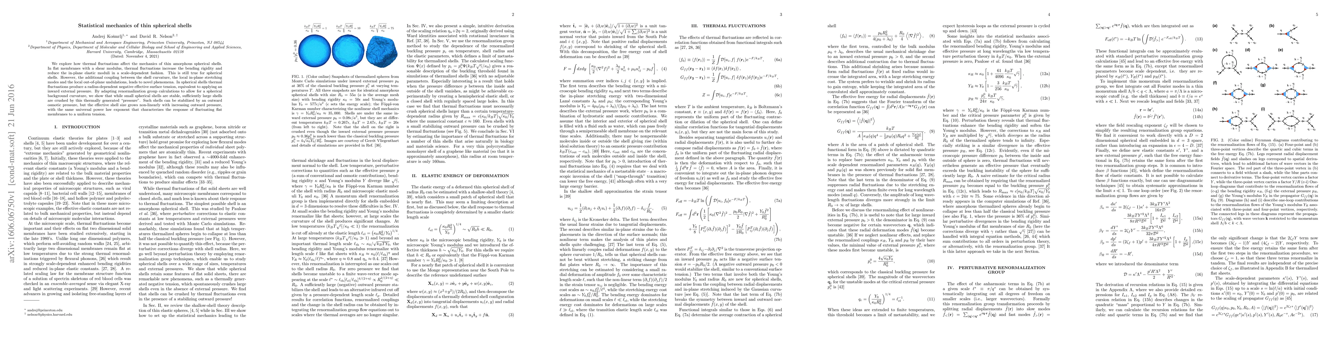 This paper investigates the impact of thermal fluctuations on the mechanics of thin spherical shells, revealing a radius-dependent negative effective surface tension that can crush large shells. Stabilization requires an outward osmotic pressure, with shell size growing non-linearly according to a universal power law.