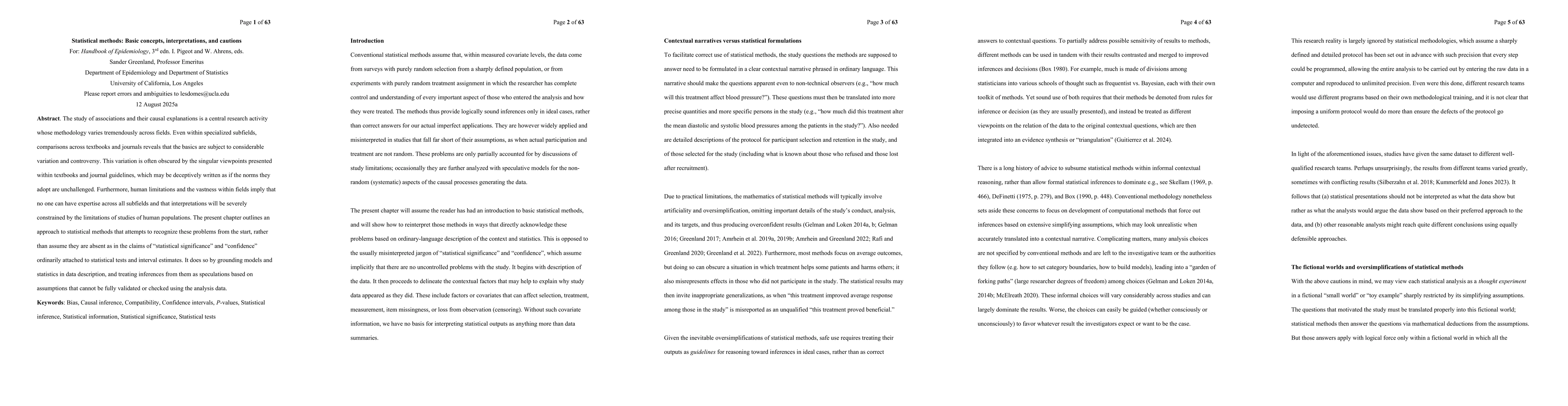 The study of associations and their causal explanations is a central research activity whose methodology varies tremendously across fields. Even within specialized subfields, comparisons across textbooks and journals reveals that the basics are subject to considerable variation and controversy. This variation is often obscured by the singular viewpoints presented within textbooks and journal guidelines, which may be deceptively written as if the norms they adopt are unchallenged. Furthermore, human limitations and the vastness within fields imply that no one can have expertise across all subfields and that interpretations will be severely constrained by the limitations of studies of human populations. The present chapter outlines an approach to statistical methods that attempts to recognize these problems from the start, rather than assume they are absent as in the claims of 'statistical significance' and 'confidence' ordinarily attached to statistical tests and interval estimates. It does so by grounding models and statistics in data description, and treating inferences from them as speculations based on assumptions that cannot be fully validated or checked using the analysis data.