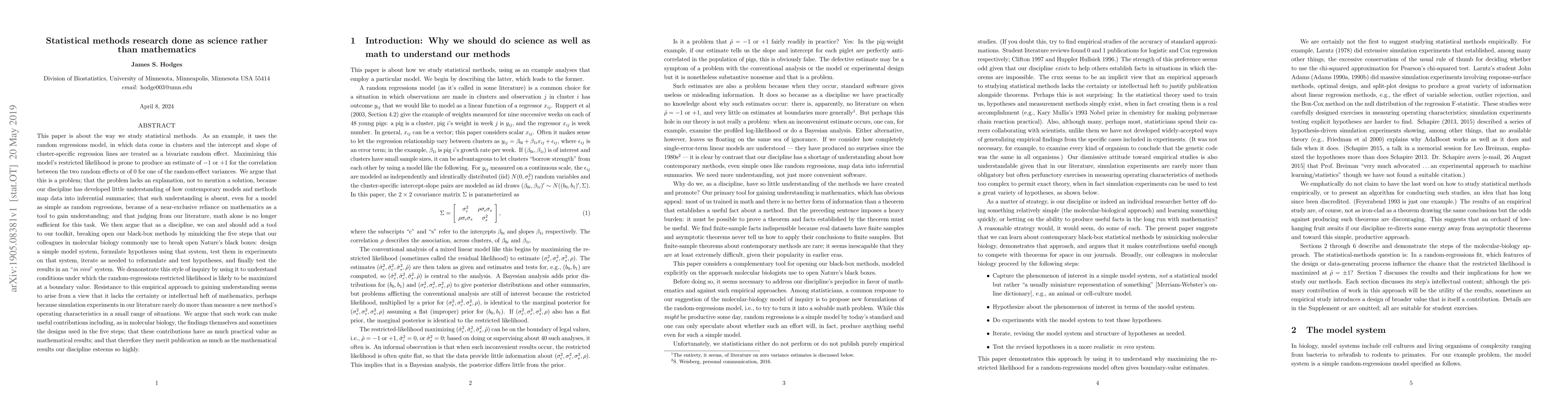 This paper is about how we study statistical methods. As an example, it uses the random regressions model, in which the intercept and slope of cluster-specific regression lines are modeled as a bivariate random effect. Maximizing this model's restricted likelihood often gives a boundary value for the random effect correlation or variances. We argue that this is a problem; that it is a problem because our discipline has little understanding of how contemporary models and methods map data to inferential summaries; that we lack such understanding, even for models as simple as this, because of a near-exclusive reliance on mathematics as a means of understanding; and that math alone is no longer sufficient. We then argue that as a discipline, we can and should break open our black-box methods by mimicking the five steps that molecular biologists commonly use to break open Nature's black boxes: design a simple model system, formulate hypotheses using that system, test them in experiments on that system, iterate as needed to reformulate and test hypotheses, and finally test the results in an "in vivo" system. We demonstrate this by identifying conditions under which the random-regressions restricted likelihood is likely to be maximized at a boundary value. Resistance to this approach seems to arise from a view that it lacks the certainty or intellectual heft of mathematics, perhaps because simulation experiments in our literature rarely do more than measure a new method's operating characteristics in a small range of situations. We argue that such work can make useful contributions including, as in molecular biology, the findings themselves and sometimes the designs used in the five steps; that these contributions have as much practical value as mathematical results; and that therefore they merit publication as much as the mathematical results our discipline esteems so highly.