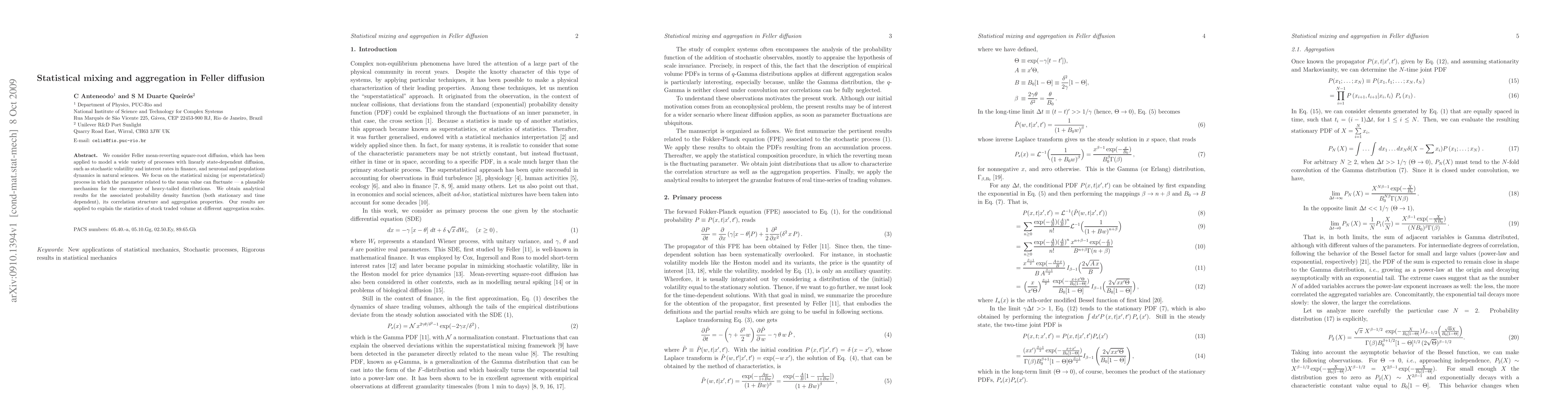 We consider Feller mean-reverting square-root diffusion, which has been applied to model a wide variety of processes with linearly state-dependent diffusion, such as stochastic volatility and interest rates in finance, and neuronal and populations dynamics in natural sciences. We focus on the statistical mixing (or superstatistical) process in which the parameter related to the mean value can fluctuate - a plausible mechanism for the emergence of heavy-tailed distributions. We obtain analytical results for the associated probability density function (both stationary and time dependent), its correlation structure and aggregation properties. Our results are applied to explain the statistics of stock traded volume at different aggregation scales.