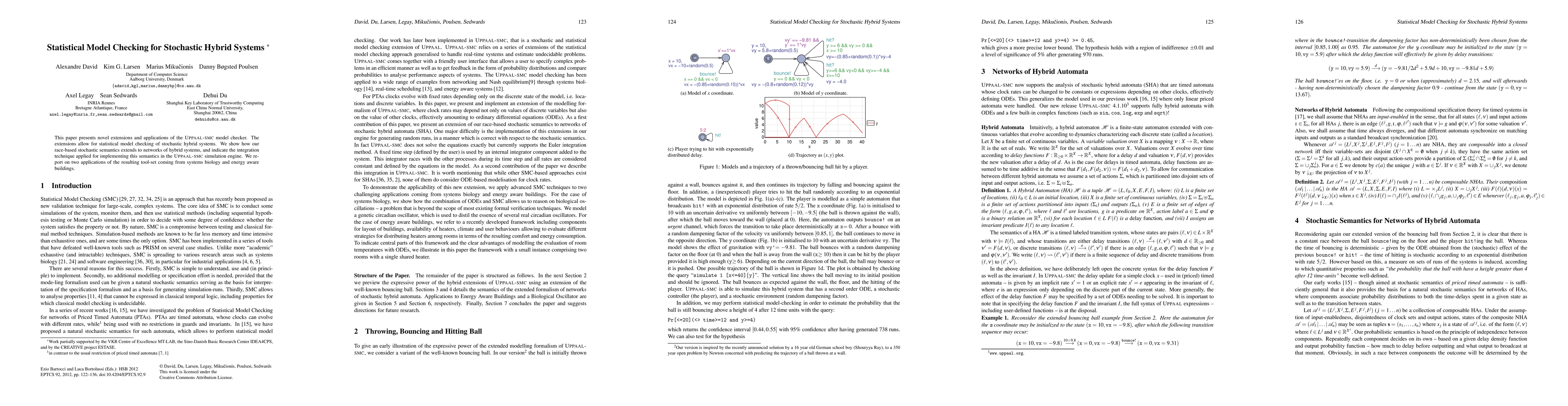 This paper presents a tool for statistical model checking of stochastic hybrid systems, with applications in systems biology and energy-efficient buildings, extending the UPPAAL-SMC model checker.