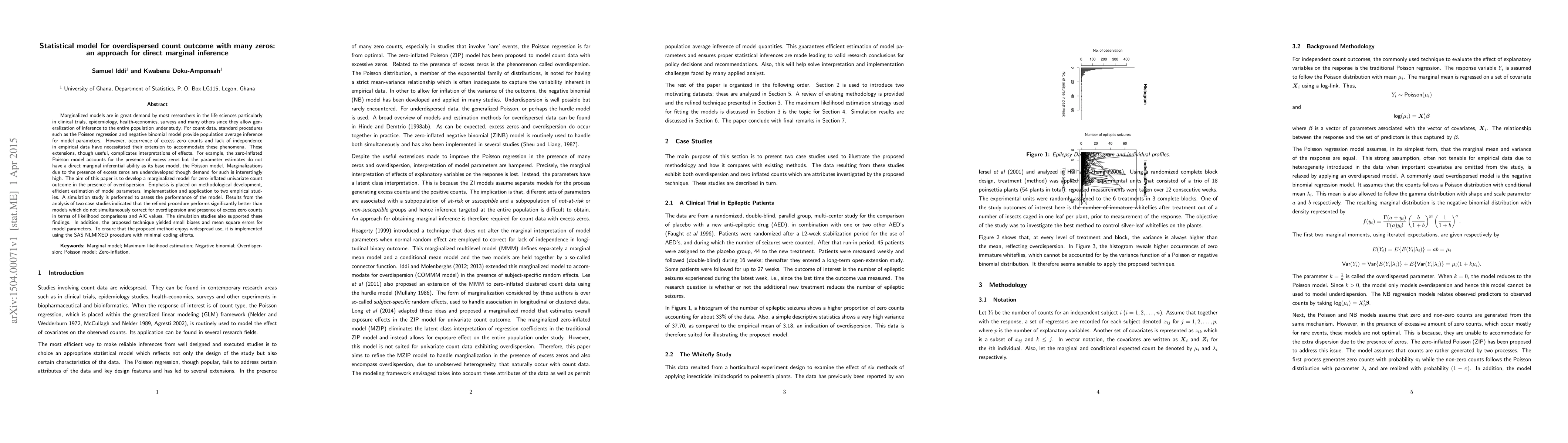 This paper develops a new statistical model for overdispersed count data with many zeros, focusing on direct marginal inference. The proposed method outperforms existing models in simulations and case studies, showing better likelihood and lower biases, and is implemented in SAS for easy use.
