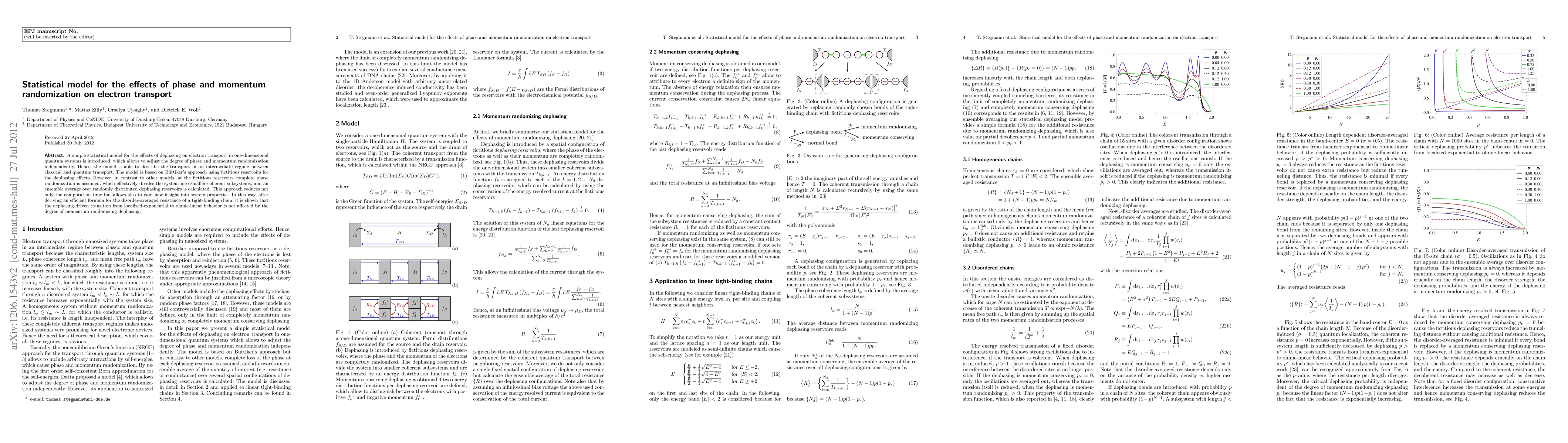 A simple statistical model for the effects of dephasing on electron transport in one-dimensional quantum systems is introduced, which allows to adjust the degree of phase and momentum randomization independently. Hence, the model is able to describe the transport in an intermediate regime between classic and quantum transport. The model is based on B\"uttiker's approach using fictitious reservoirs for the dephasing effects. However, in contrast to other models, at the fictitious reservoirs complete phase randomization is assumed, which effectively divides the system into smaller coherent subsystems, and an ensemble average over randomly distributed dephasing reservoirs is calculated. This approach reduces not only the computation time but allows also to gain new insight into system properties. In this way, after deriving an efficient formula for the disorder-averaged resistance of a tight-binding chain, it is shown that the dephasing-driven transition from localized-exponentially to ohmic-linear behavior is not affected by the degree of momentum randomizing dephasing.
