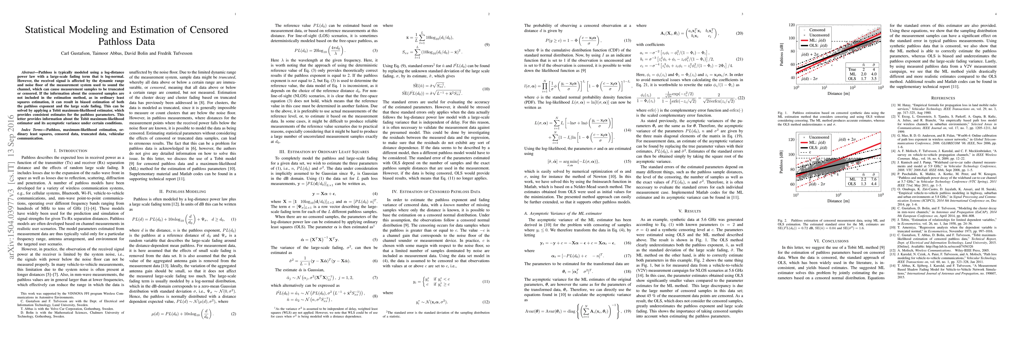 Pathloss is typically modeled using a log-distance power law with a large-scale fading term that is log-normal. However, the received signal is affected by the dynamic range and noise floor of the measurement system used to sound the channel, which can cause measurement samples to be truncated or censored. If the information about the censored samples are not included in the estimation method, as in ordinary least squares estimation, it can result in biased estimation of both the pathloss exponent and the large scale fading. This can be solved by applying a Tobit maximum-likelihood estimator, which provides consistent estimates for the pathloss parameters. This letter provides information about the Tobit maximum-likelihood estimator and its asymptotic variance under certain conditions.