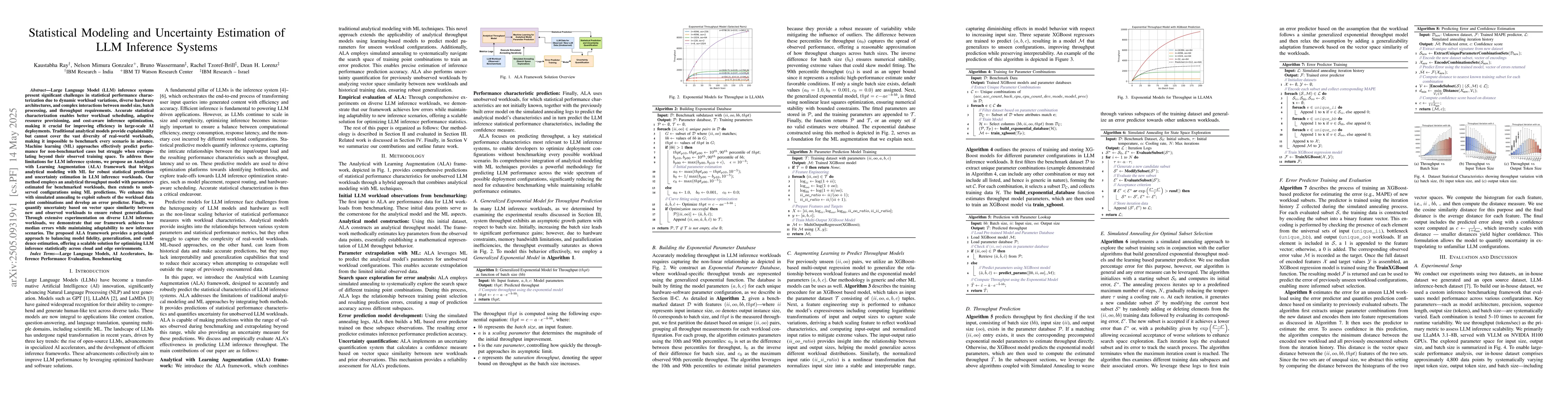 A new framework called Analytical with Learning Augmentation (ALA) is proposed to improve statistical modeling and uncertainty estimation for Large Language Model (LLM) inference systems, offering better performance prediction and adaptability to diverse workloads.