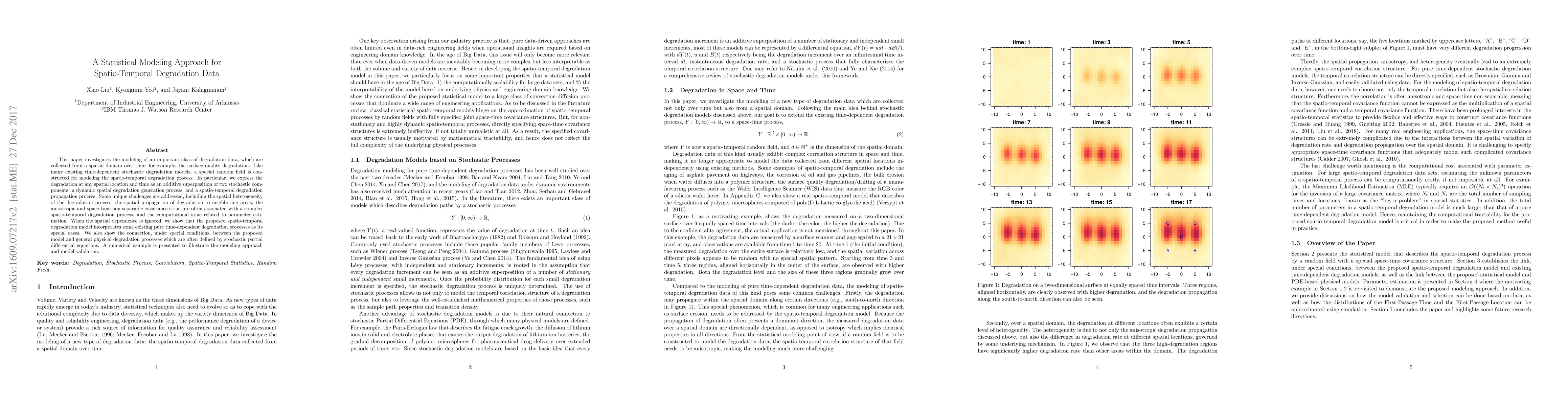 This paper develops a statistical model for spatio-temporal degradation data, addressing spatial heterogeneity and anisotropic covariance structures. It demonstrates the model's connection to existing time-dependent degradation processes and validates it through a numerical example.