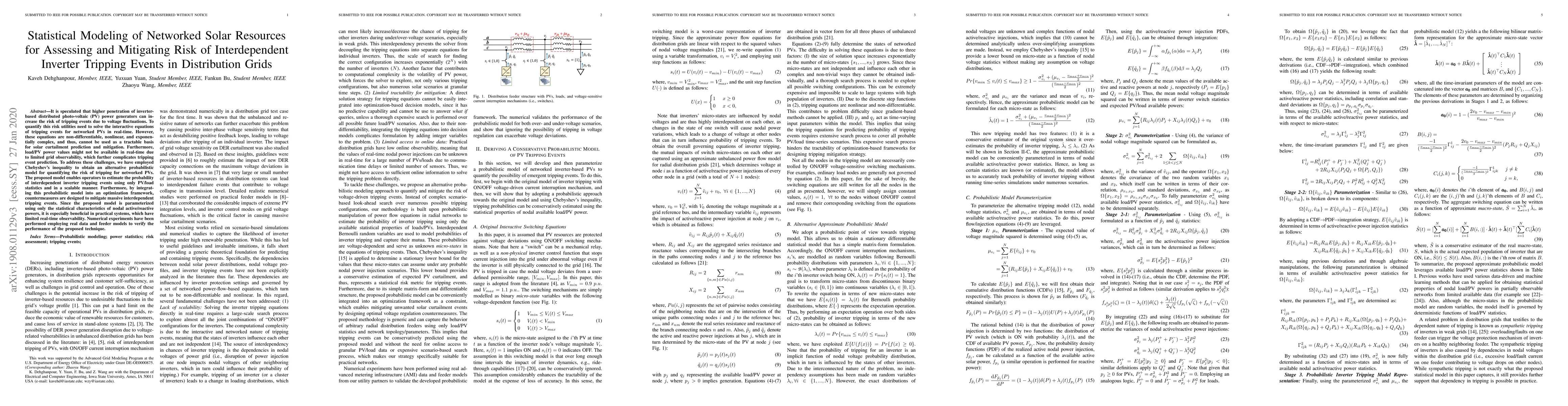 This paper proposes a probabilistic model using Chebyshev's inequality to quantify the risk of interdependent inverter tripping events in distribution grids with high penetration of networked PVs. The model estimates tripping probabilities based on PV/load statistics, enabling scalable and practical mitigation strategies despite limited real-time observability.