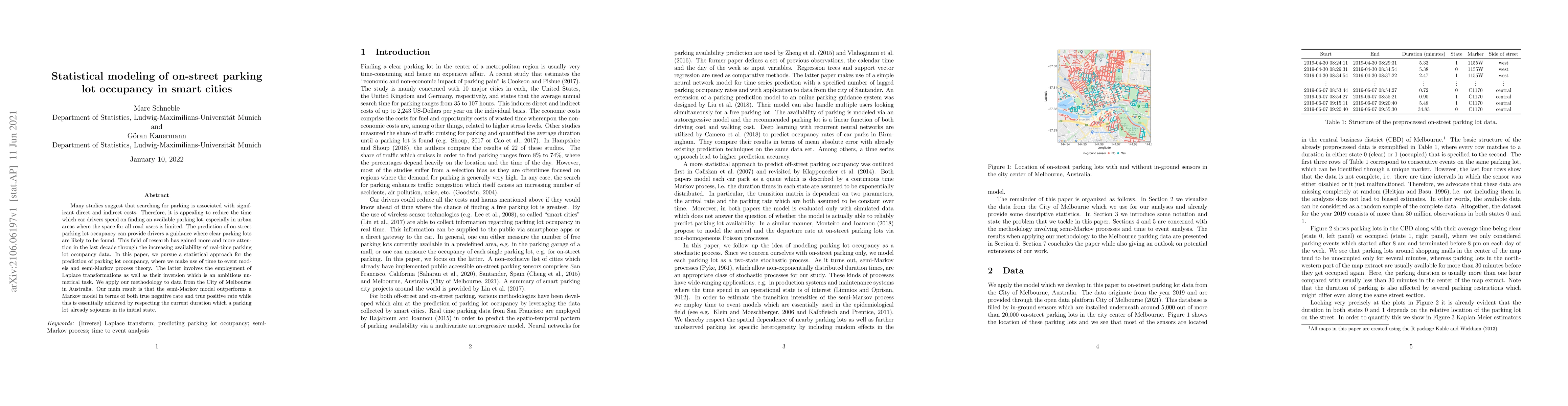 This paper develops a statistical model using semi-Markov processes to predict on-street parking occupancy in smart cities, outperforming traditional Markov models. The approach leverages real-time data from Melbourne, Australia, to enhance the accuracy of parking availability predictions.