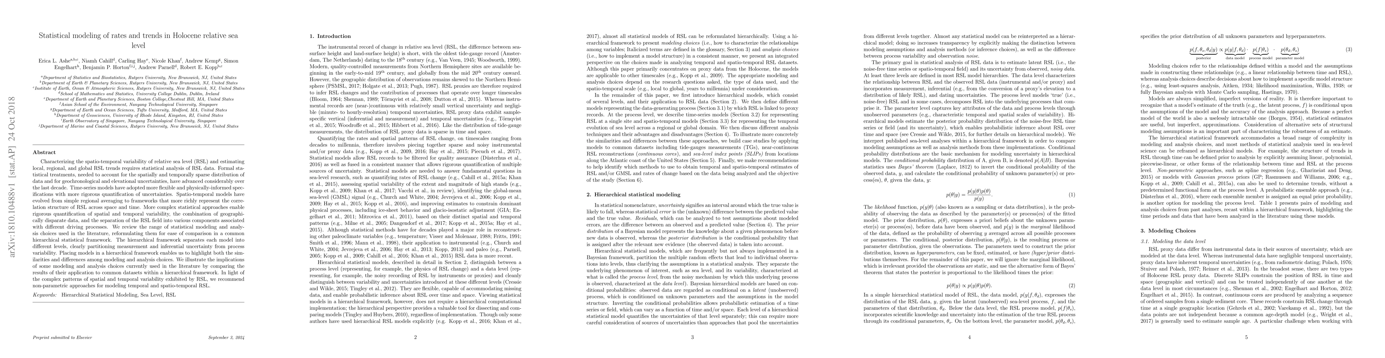 Characterizing the spatio-temporal variability of relative sea level (RSL) and estimating local, regional, and global RSL trends requires statistical analysis of RSL data. Formal statistical treatments, needed to account for the spatially and temporally sparse distribution of data and for geochronological and elevational uncertainties, have advanced considerably over the last decade. Time-series models have adopted more flexible and physically-informed specifications with more rigorous quantification of uncertainties. Spatio-temporal models have evolved from simple regional averaging to frameworks that more richly represent the correlation structure of RSL across space and time. More complex statistical approaches enable rigorous quantification of spatial and temporal variability, the combination of geographically disparate data, and the separation of the RSL field into various components associated with different driving processes. We review the range of statistical modeling and analysis choices used in the literature, reformulating them for ease of comparison in a common hierarchical statistical framework. The hierarchical framework separates each model into different levels, clearly partitioning measurement and inferential uncertainty from process variability. Placing models in a hierarchical framework enables us to highlight both the similarities and differences among modeling and analysis choices. We illustrate the implications of some modeling and analysis choices currently used in the literature by comparing the results of their application to common datasets within a hierarchical framework. In light of the complex patterns of spatial and temporal variability exhibited by RSL, we recommend non-parametric approaches for modeling temporal and spatio-temporal RSL.