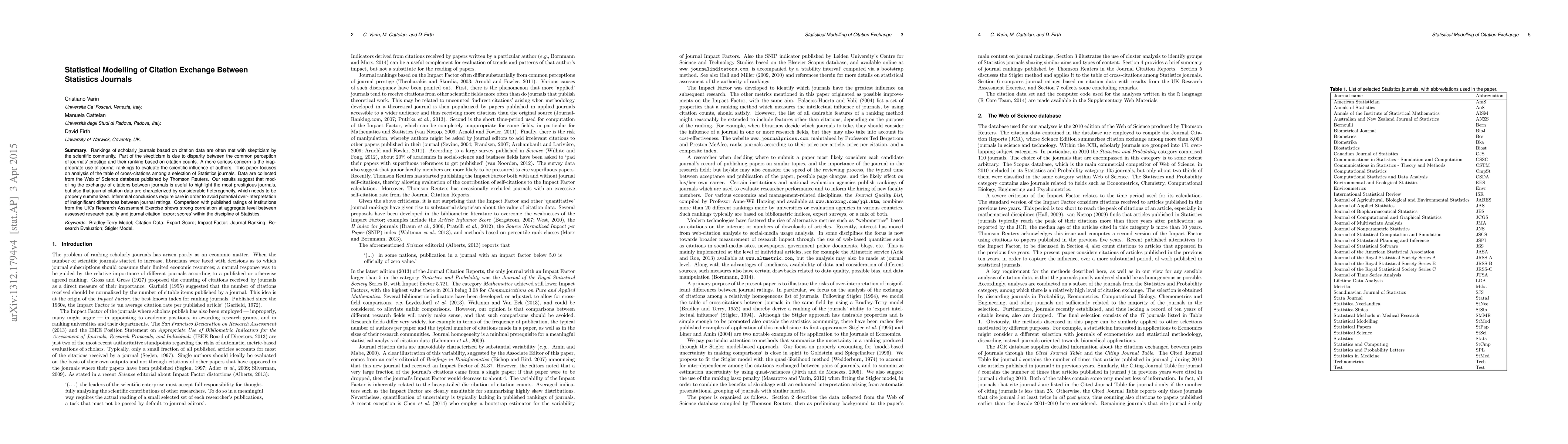 This paper analyzes cross-citations among selected Statistics journals to better understand citation exchange and journal prestige, finding significant heterogeneity in citation data. It emphasizes the need for careful interpretation of journal rankings to avoid over-evaluating authors' influence.