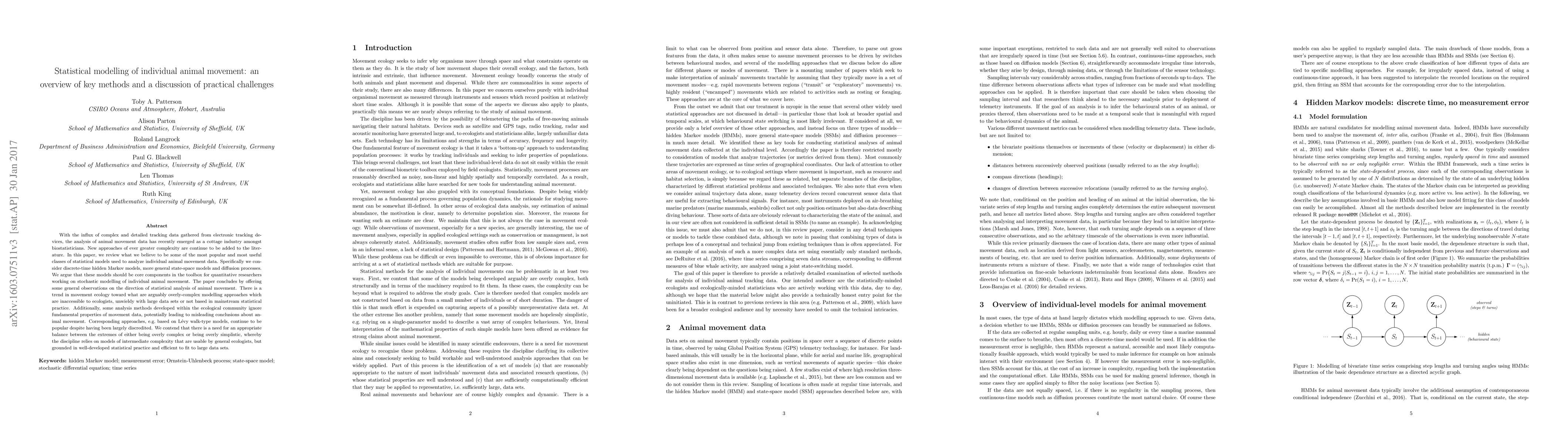 This paper reviews key statistical models for analyzing animal movement data, including discrete-time hidden Markov models, state-space models, and diffusion processes. It argues for a balance between complexity and usability, cautioning against overly complex or simplistic models that may not be grounded in mainstream statistical practices or practical for large datasets.