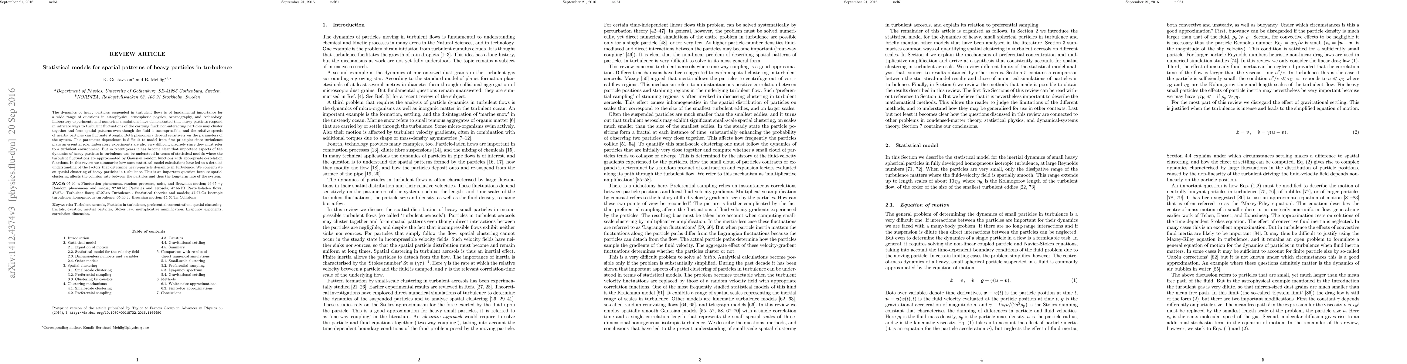B. Mehlig, K. Gustavsson, J. Bec