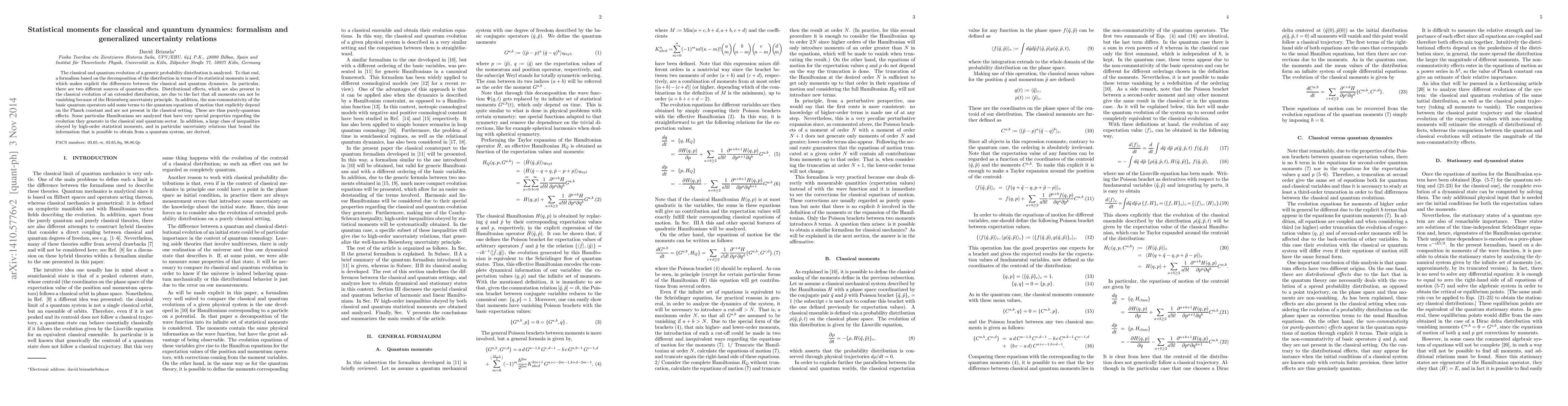This paper develops a formalism for classical and quantum dynamics based on statistical moments, highlighting two sources of quantum effects: distributional and non-commutative terms. It derives inequalities and uncertainty relations that bound the information obtainable from quantum systems.