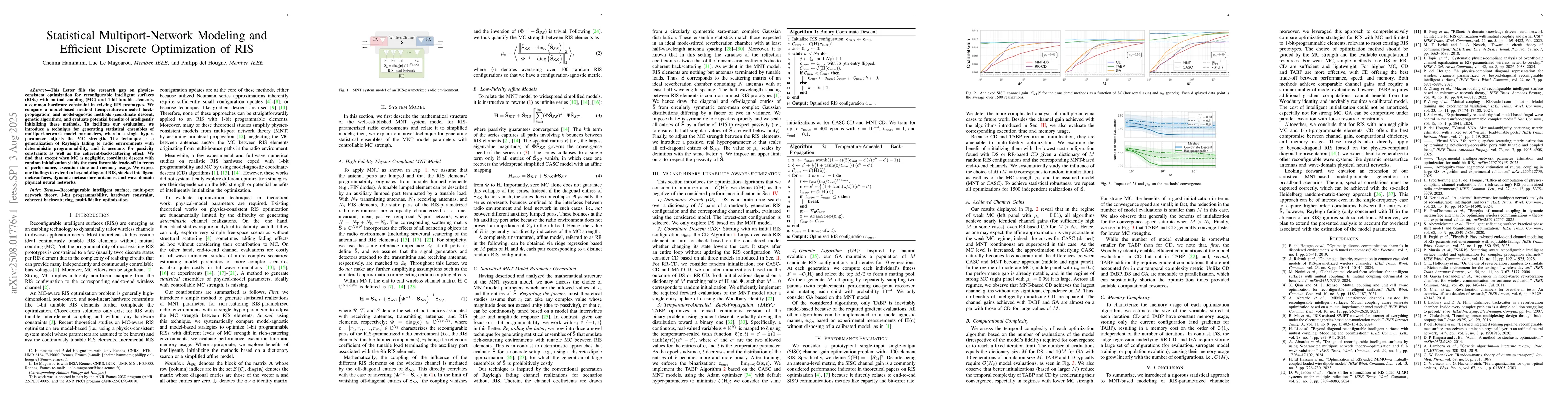 This Letter fills the research gap on physics-consistent optimization for reconfigurable intelligent surfaces (RISs) with mutual coupling (MC) and 1-bit-tunable elements, a common hardware constraint in existing RIS prototypes. We compare a model-based method (temperature-annealed back-propagation) and model-agnostic methods (coordinate descent, genetic algorithm), and evaluate potential benefits of intelligently initializing these methods. To facilitate our evaluation, we introduce a technique for generating statistical ensembles of multiport-network model parameters, wherein a single hyper-parameter adjusts the MC strength. The technique is a generalization of Rayleigh fading to radio environments with deterministic programmability, and it accounts for passivity constraints as well as the coherent-backscattering effect. We find that, except when MC is negligible, coordinate descent with random initialization yields the most favorable trade-off in terms of performance, execution time and memory usage. We expect our findings to extend to beyond-diagonal RIS, stacked intelligent metasurfaces, dynamic metasurface antennas, and wave-domain physical neural networks.