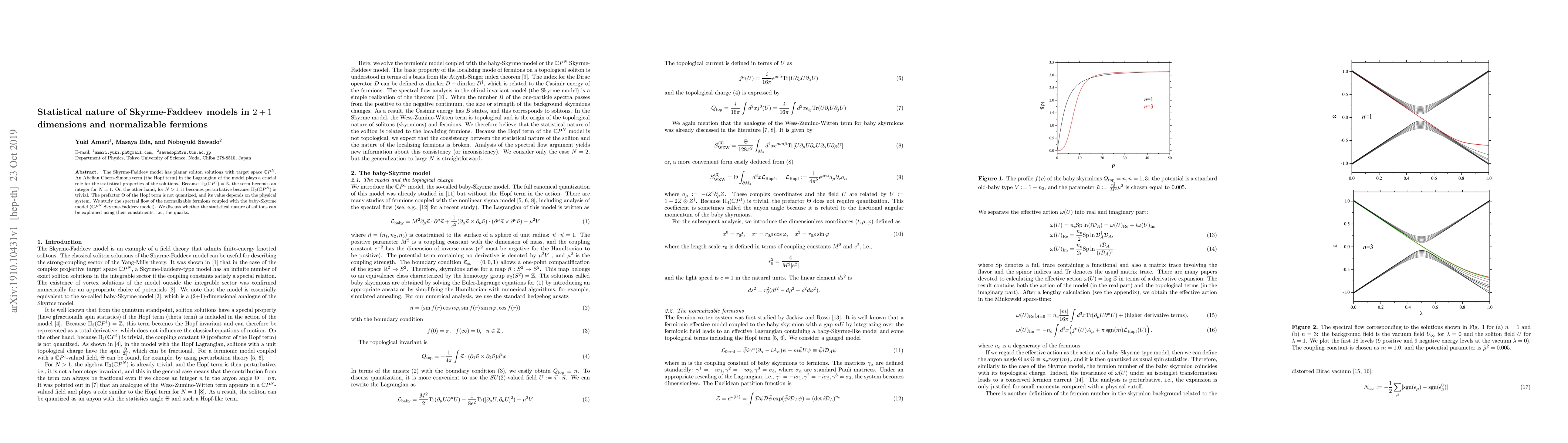 The Skyrme-Faddeev model has planar soliton solutions with target space $\mathbb{C}P^N$. An Abelian Chern-Simons term (the Hopf term) in the Lagrangian of the model plays a crucial role for the statistical properties of the solutions. Because $\Pi_3(\mathbb{C}P^1)=\mathbb{Z}$, the term becomes an integer for $N=1$. On the other hand, for $N>1$, it becomes perturbative because $\Pi_3(\mathbb{C}P^N)$ is trivial. The prefactor $\Theta$ of the Hopf term is not quantized, and its value depends on the physical system. We study the spectral flow of the normalizable fermions coupled with the baby-Skyrme model ($\mathbb{C}P^N$ Skyrme-Faddeev model). We discuss whether the statistical nature of solitons can be explained using their constituents, i.e., the quarks.
