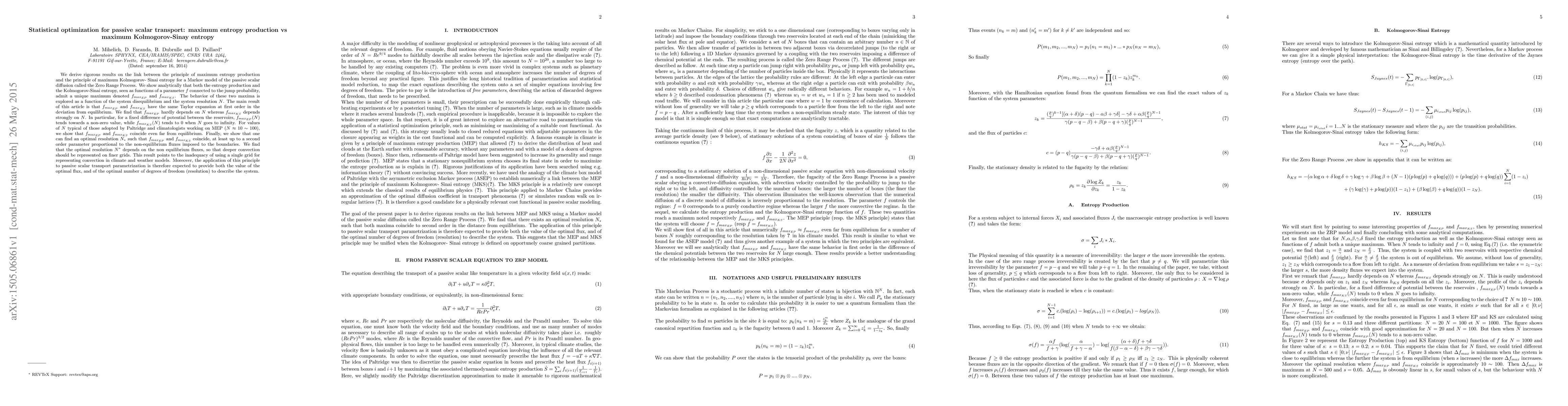 This paper explores the connection between two optimization principles in passive scalar transport: maximum entropy production and maximum Kolmogorov-Sinai entropy. It shows that these principles converge to the same optimal value at low system disequilibrium and resolution.