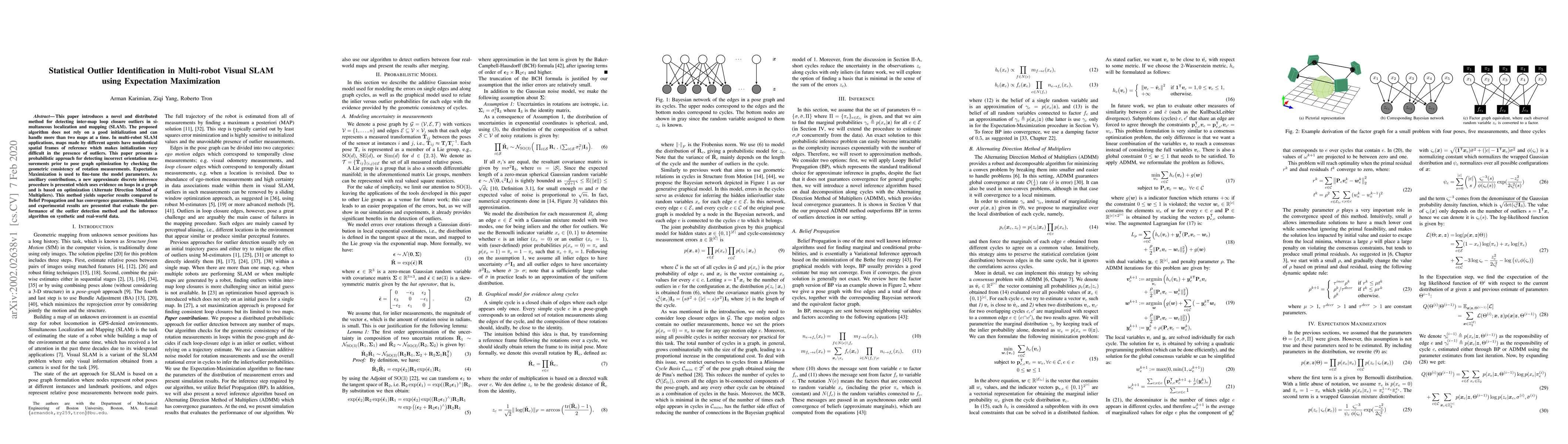 This paper introduces a novel and distributed method for detecting inter-map loop closure outliers in simultaneous localization and mapping (SLAM). The proposed algorithm does not rely on a good initialization and can handle more than two maps at a time. In multi-robot SLAM applications, maps made by different agents have nonidentical spatial frames of reference which makes initialization very difficult in the presence of outliers. This paper presents a probabilistic approach for detecting incorrect orientation measurements prior to pose graph optimization by checking the geometric consistency of rotation measurements. Expectation-Maximization is used to fine-tune the model parameters. As ancillary contributions, a new approximate discrete inference procedure is presented which uses evidence on loops in a graph and is based on optimization (Alternate Direction Method of Multipliers). This method yields superior results compared to Belief Propagation and has convergence guarantees. Simulation and experimental results are presented that evaluate the performance of the outlier detection method and the inference algorithm on synthetic and real-world data.