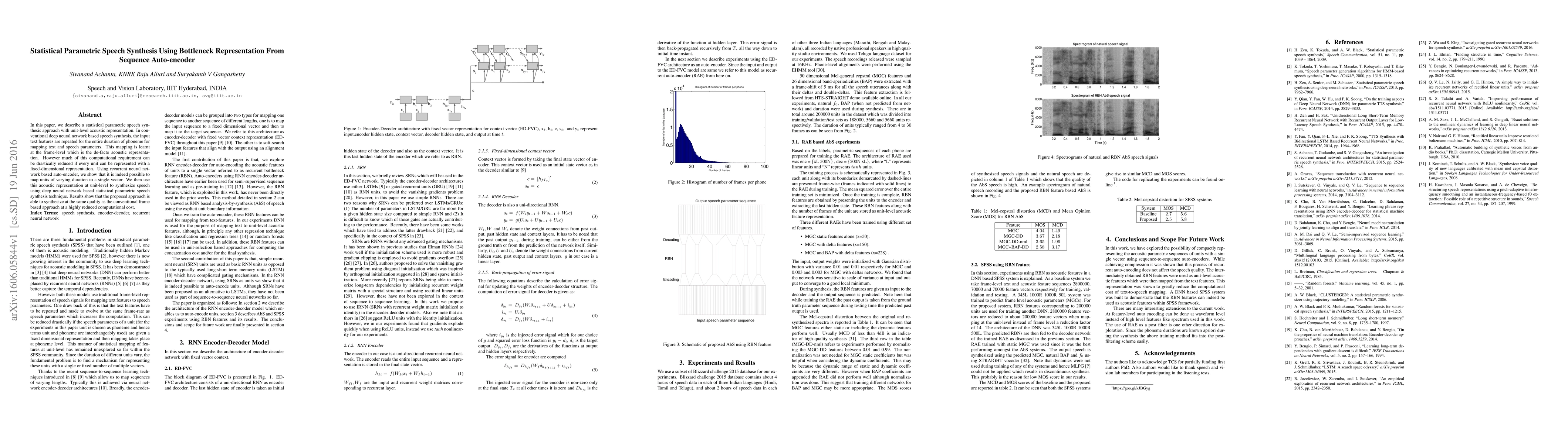 This paper proposes a statistical parametric speech synthesis method that uses a bottleneck representation from a sequence auto-encoder to reduce computational costs. The approach maps speech units to fixed-dimensional vectors, synthesizing speech with quality comparable to conventional frame-level methods but with significantly lower computational demands.