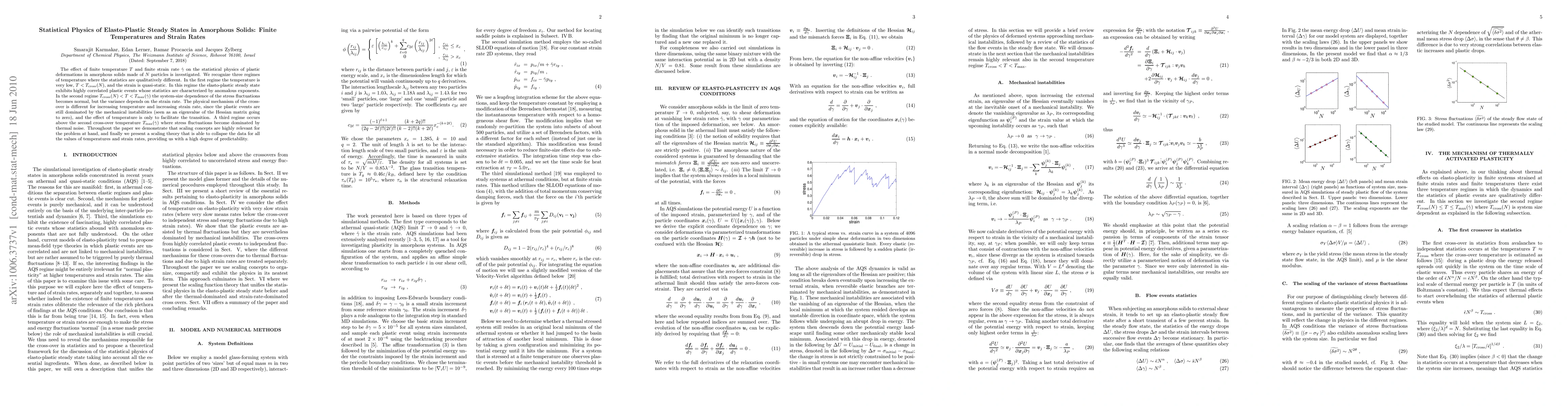 Researchers studied how temperature and strain rate affect plastic deformations in amorphous solids, identifying three regimes with distinct statistical physics behaviors, and developed a scaling theory that predicts their behavior.