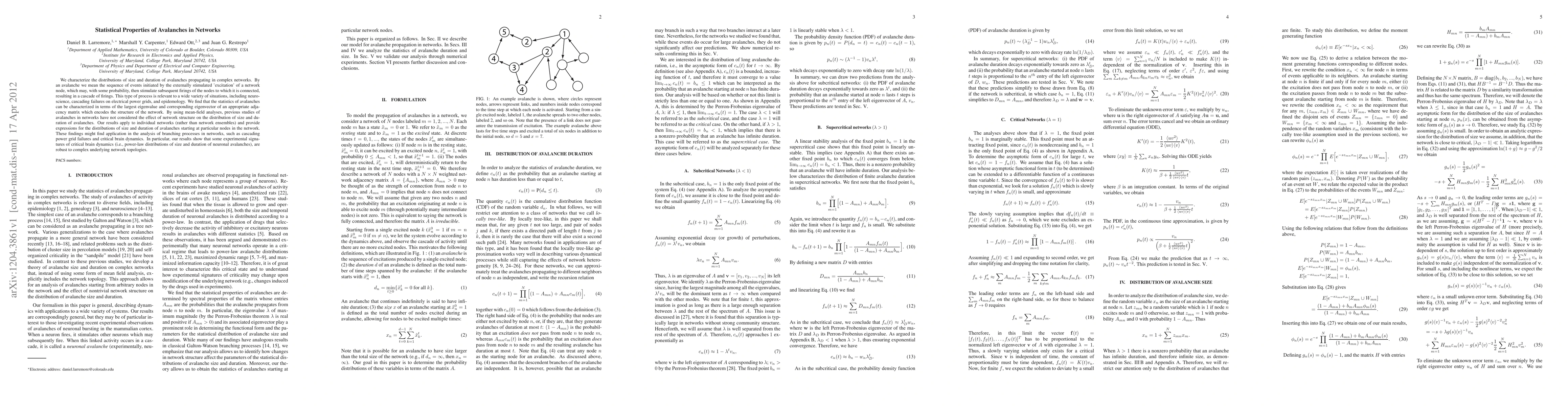 Researchers study avalanches in complex networks, finding that their size and duration can be predicted using network structure, with implications for understanding critical brain dynamics and cascading failures in power grids.