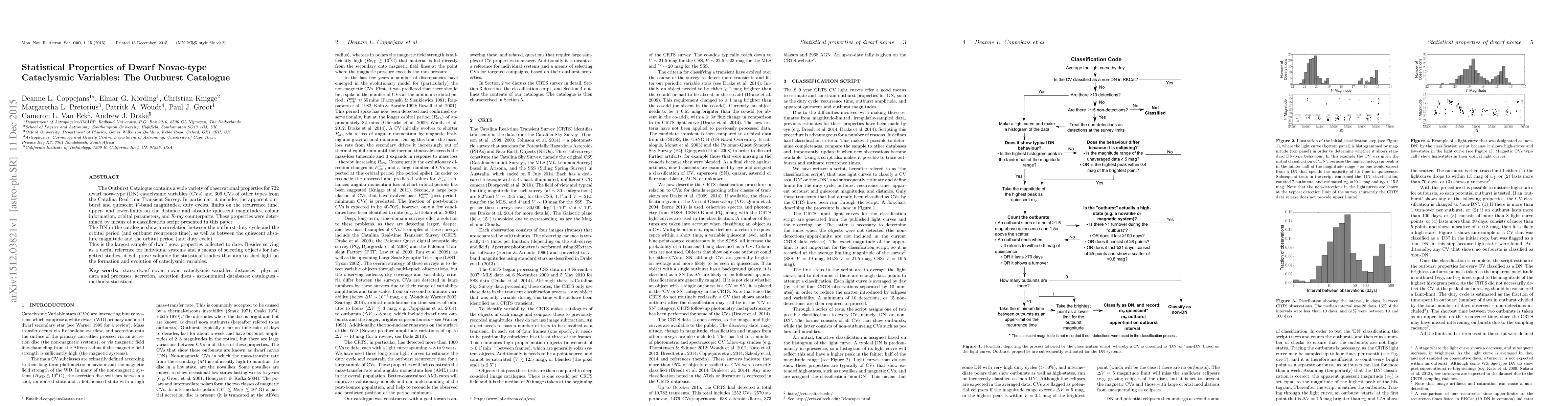 The research utilized a classification script to analyze light curves from the Catalina Real-time Transient Survey (CRTS) to determine various observational properties of 722 dwarf nova-type (DN) cataclysmic variables (CVs) and 309 CVs of other types.