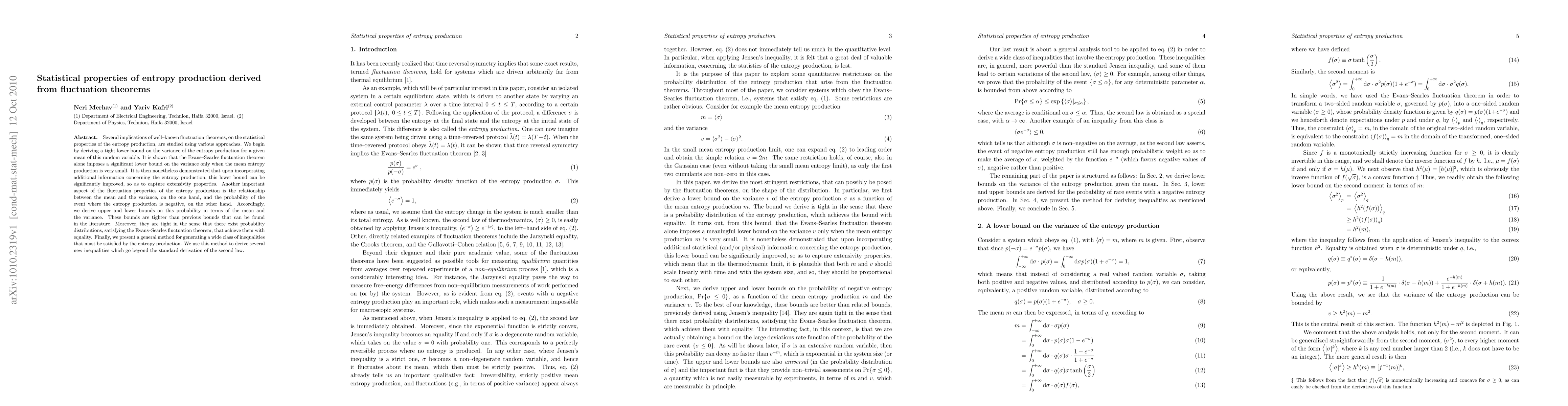 This paper investigates the statistical properties of entropy production through fluctuation theorems, deriving tighter bounds on its variance and probability of negative values, and presenting new inequalities that extend beyond traditional second law derivations. The study highlights the significant role of additional entropy information in improving lower bounds and achieving tighter probability bounds.