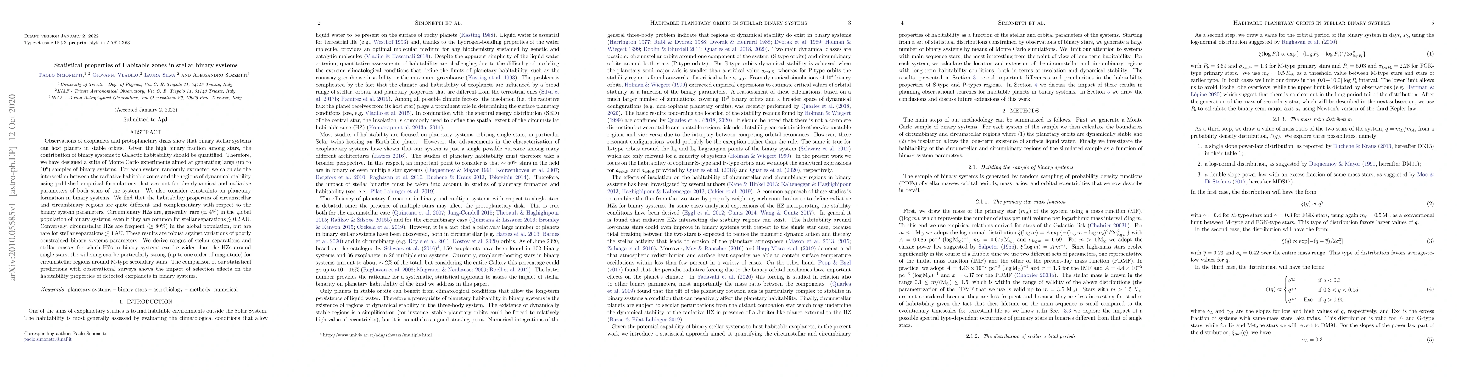 This paper investigates the statistical properties of habitable zones in binary stellar systems, finding that circumbinary habitable zones are rare but circumstellar habitable zones are frequent, especially for M-type secondary stars. The study highlights the complementary nature of these zones and their dependence on binary system parameters, revealing that habitable zones can be significantly wider in binary systems compared to single stars.