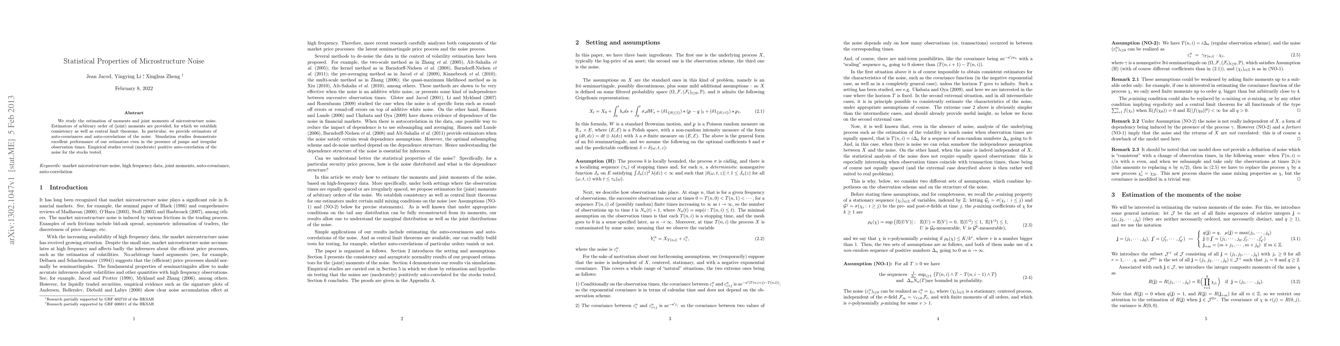 Researchers developed estimators for moments of microstructure noise, showing consistent performance even in the presence of jumps and irregular observation times. The study found moderate positive auto-correlation of microstructure noise in empirical studies.