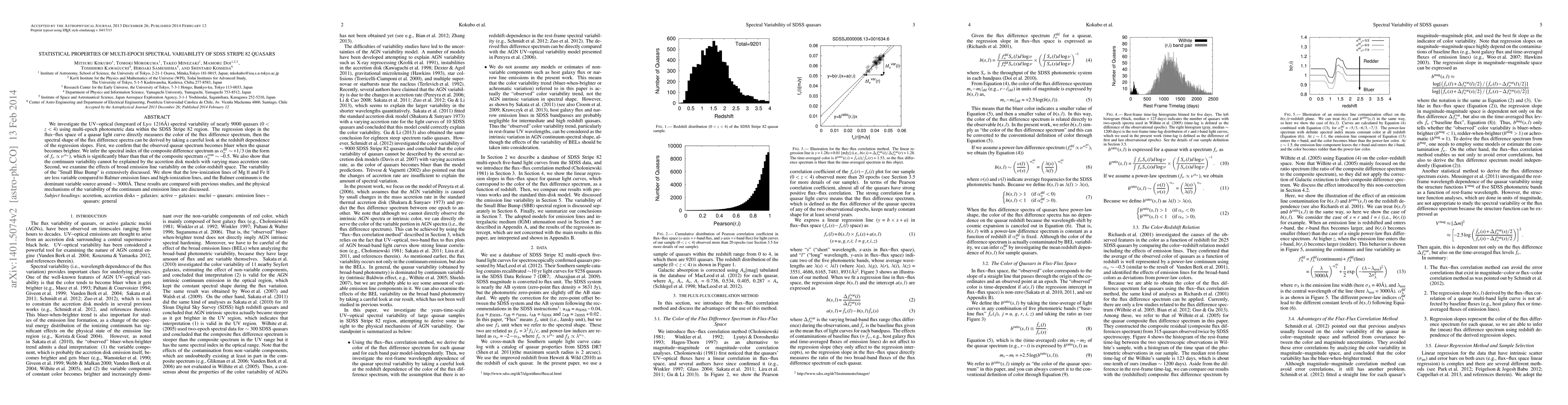 Researchers studied 9000 quasars for spectral variability over multiple epochs, finding that brighter quasars become bluer and that broad emission line variability affects color-redshift space; they also found the 'Small Blue Bump' varies less than other lines.