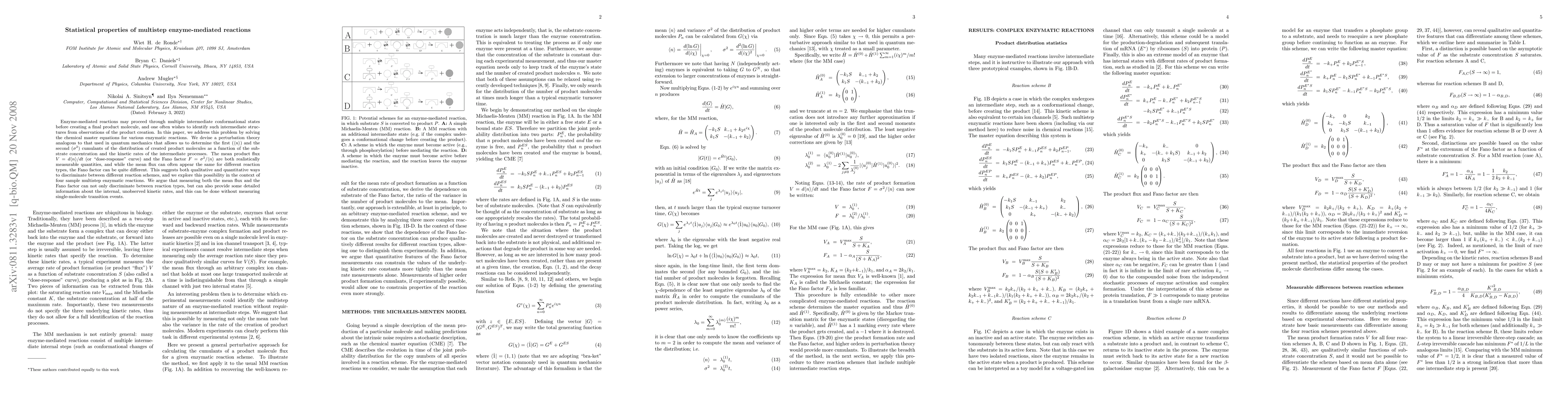 This paper develops a perturbation theory to analyze multistep enzyme-mediated reactions, determining the first and second cumulants of product distribution. It shows that the Fano factor, alongside the mean flux, can discriminate between different reaction schemes and provide insights into internal kinetic rates without single-molecule measurements.